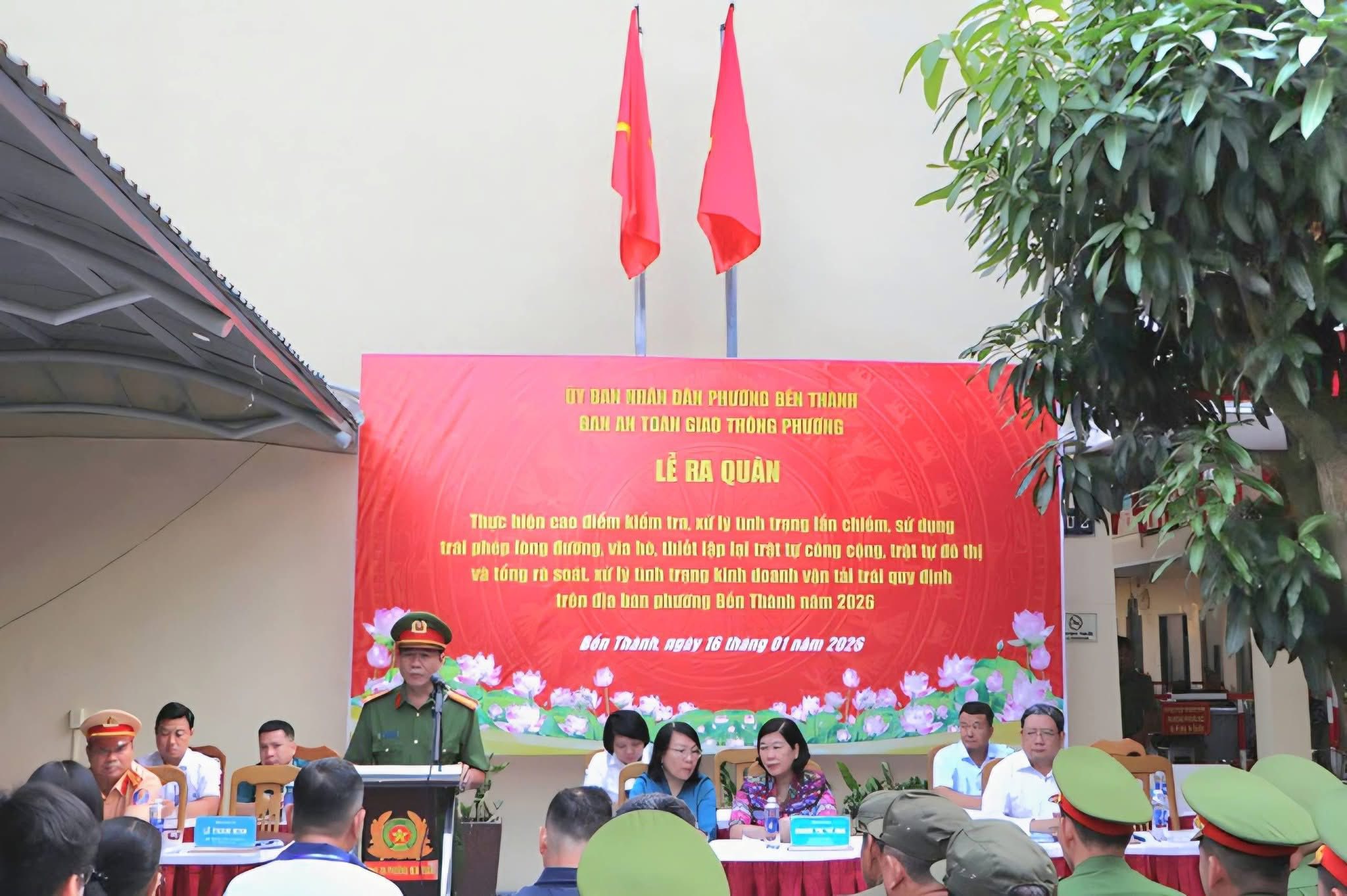 📍 Sáng ngày 16/01/2026, Ban An toàn giao thông UBND phường Bến Thành tổ chức Lễ ra quân cao điểm kiểm tra, xử lý vi phạm trật tự đô thị, trật tự công cộng và tổng rà soát hoạt động kinh doanh vận tải trên địa bàn phường.