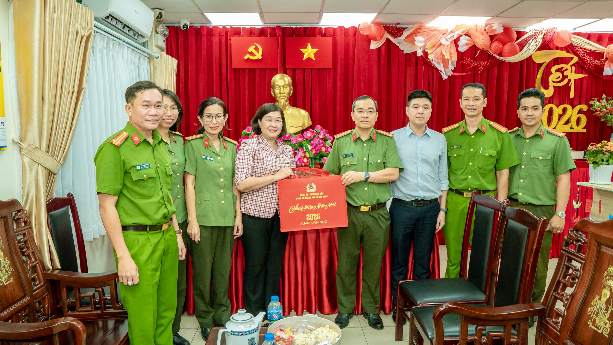 Ngày 4/2, Đoàn công tác Công an TPHCM do Đại tá Lê Quang Đạo, Phó Giám đốc Công an Thành phố làm trưởng đoàn đã thăm, tặng quà Đảng ủy và Công an phường Bến Thành nhân dịp Tết Nguyên đán Bính Ngọ 2026.