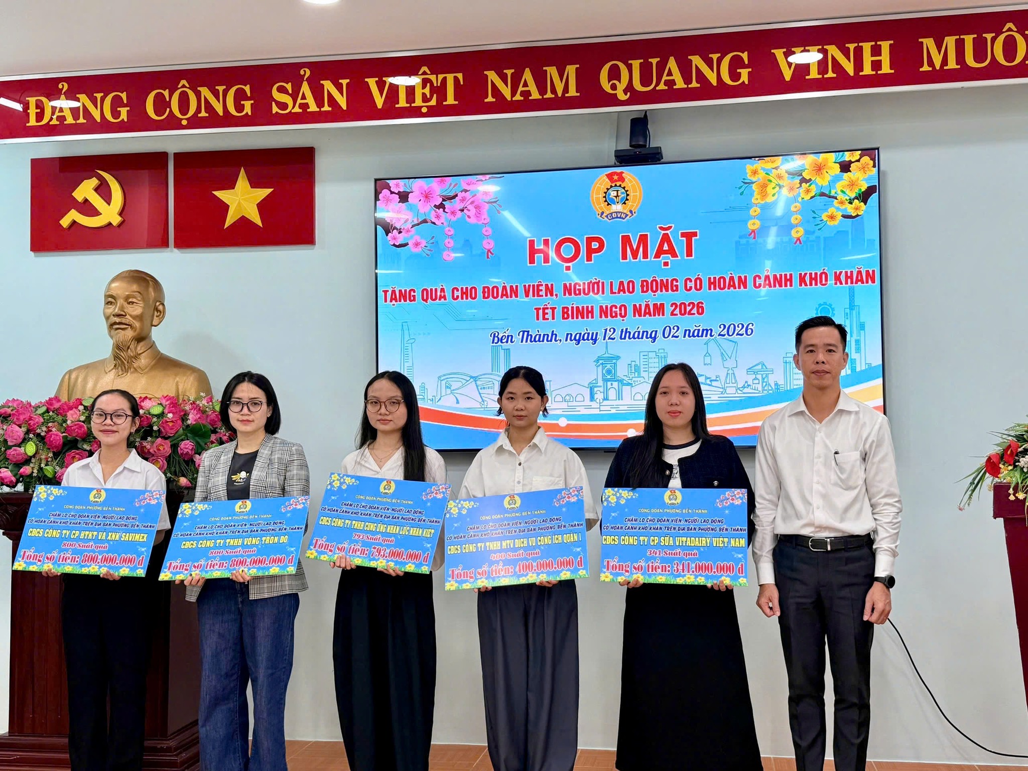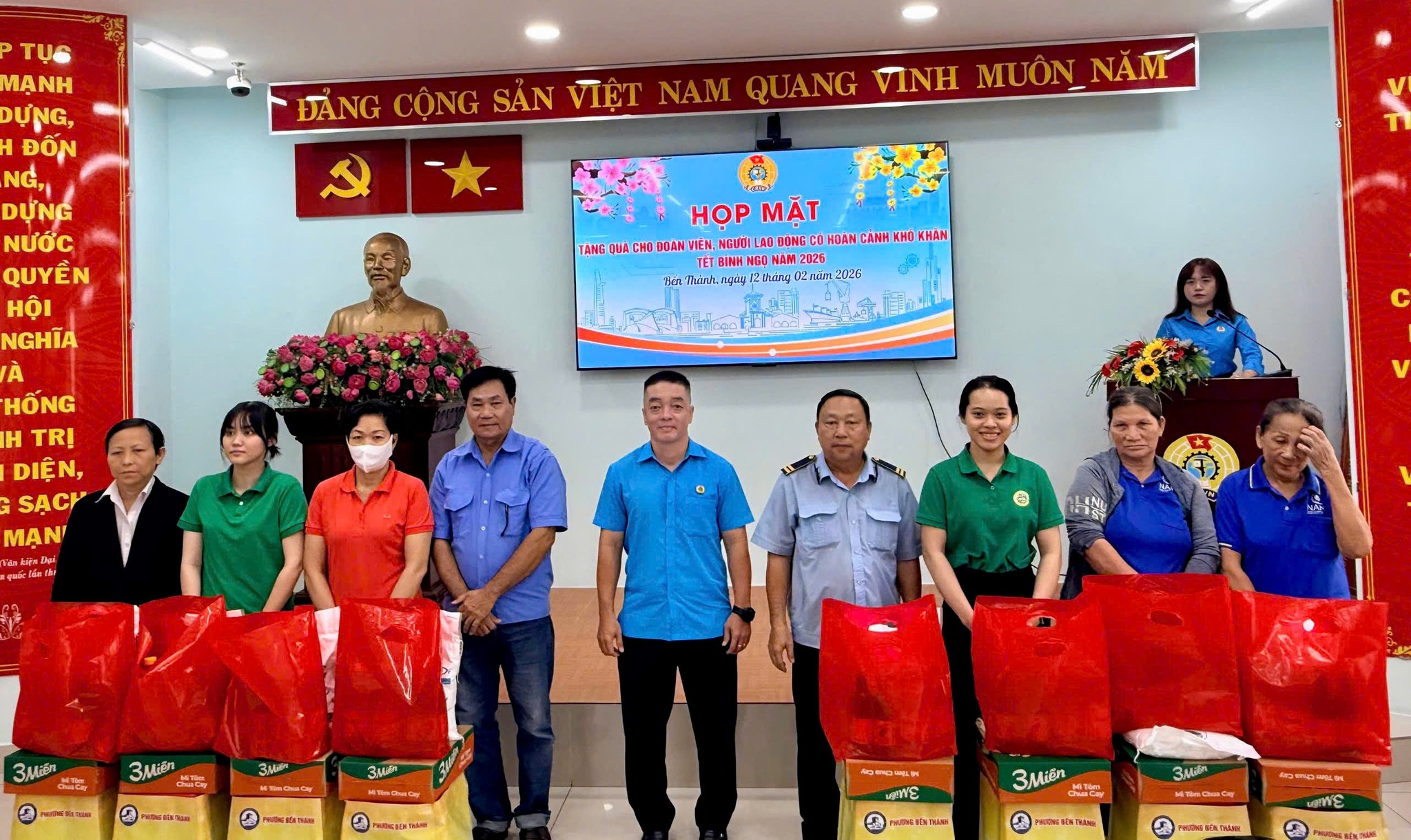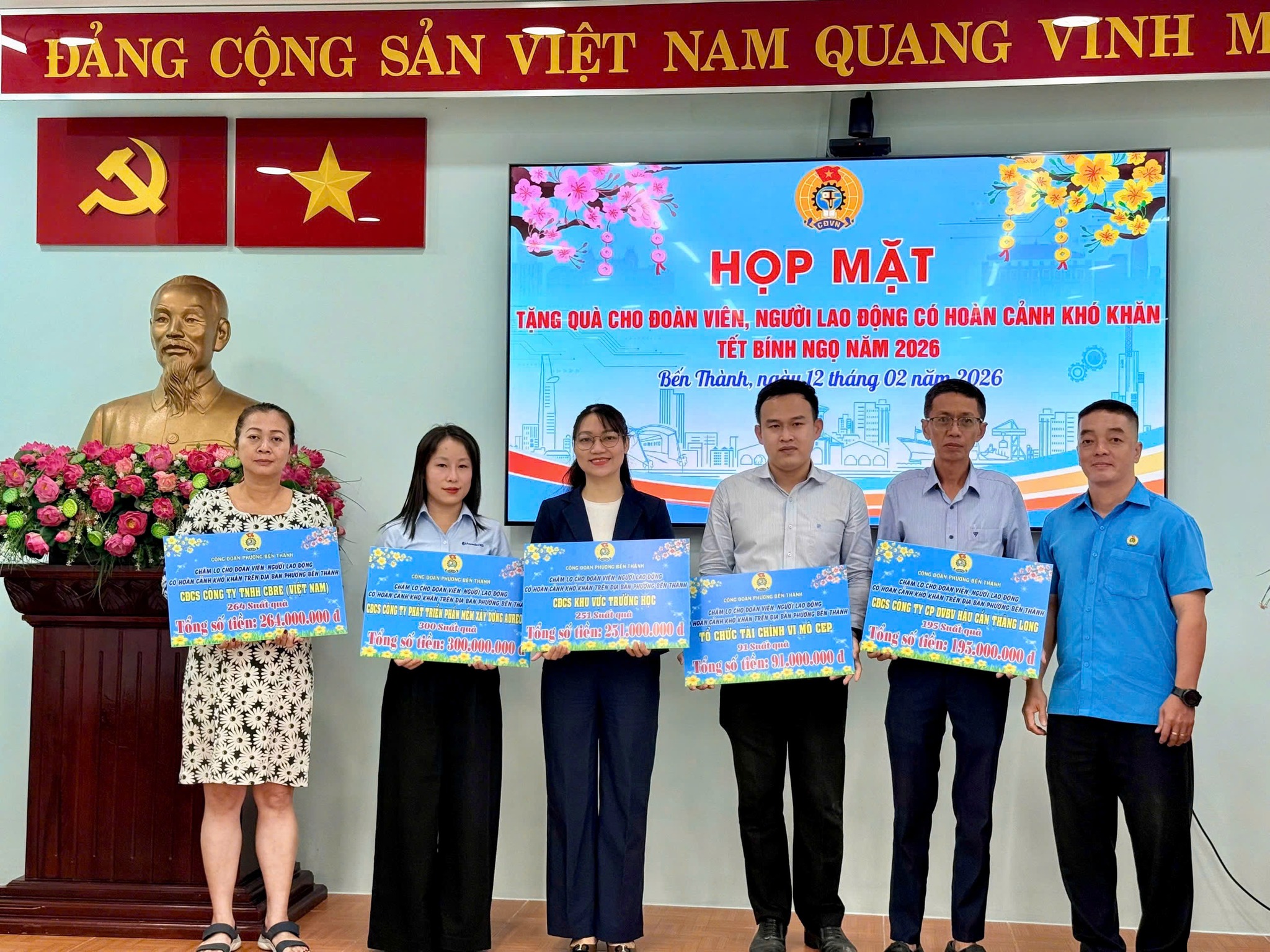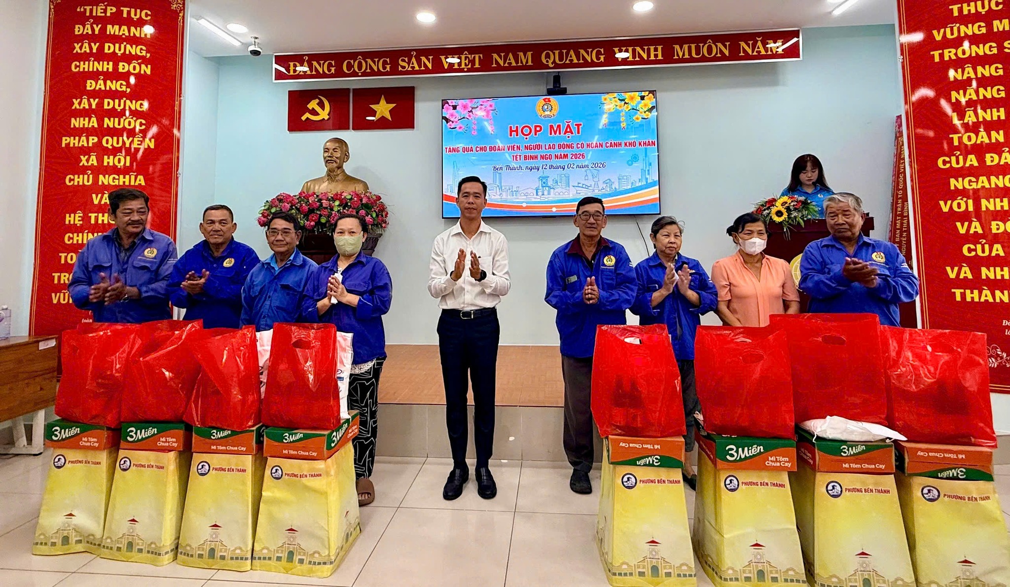 Công đoàn phường Bến Thành đã tổ chức buổi họp mặt ấm áp, trao quà Tết Nguyên đán Bính Ngọ 2026 cho đoàn viên, người lao động có hoàn cảnh khó khăn trên địa bàn, với chủ đề ý nghĩa “Tết Sum vầy – Xuân ơn Đảng”.