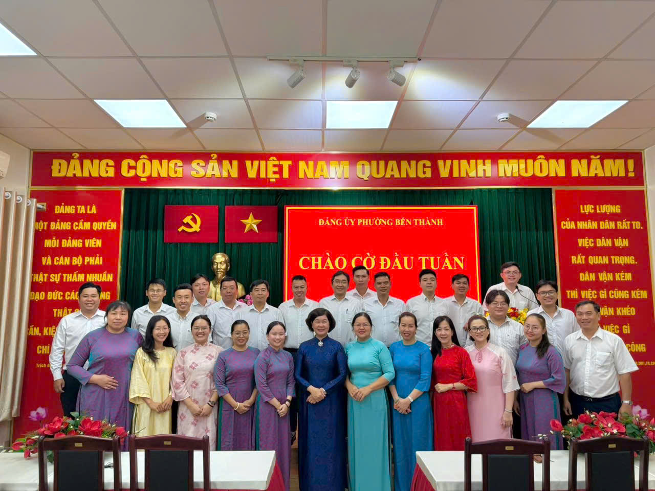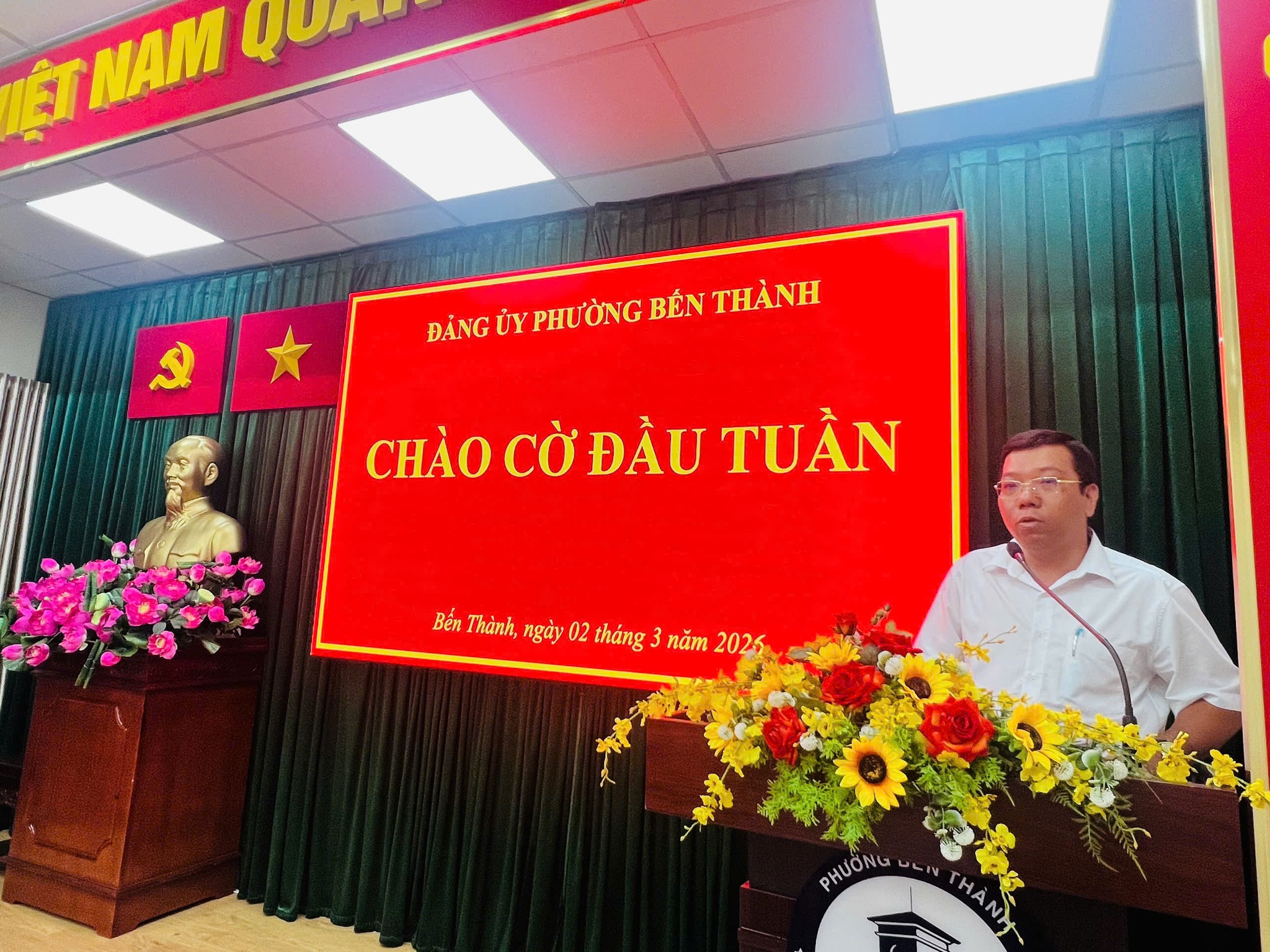 Sáng 02/3/2026, Đảng ủy phường Bến Thành tổ chức Lễ chào cờ tuần đầu tiên tháng 3 năm 2026, hướng tới Tuần lễ Áo dài năm 2026 với hoạt động “Đồng hành cùng Áo dài Việt”.