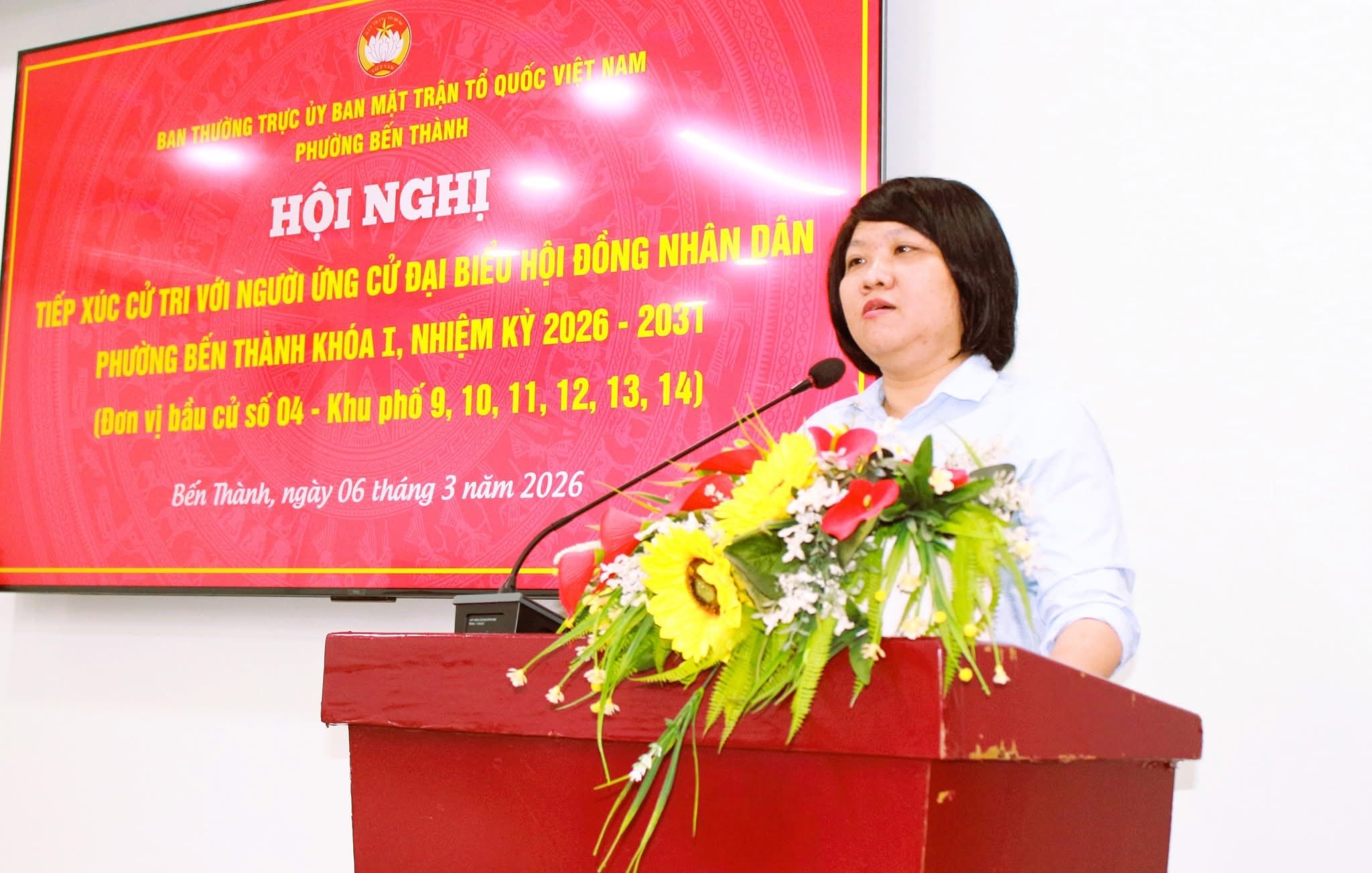 Tại hội nghị, cử tri đã nghe giới thiệu tiểu sử tóm tắt các ứng cử viên. Tiếp đó, từng ứng cử viên đã trình bày Chương trình hành động nếu được cử tri tín nhiệm bầu làm đại biểu HĐND phường Bến Thành khóa I, nhiệm kỳ 2026 – 2031.