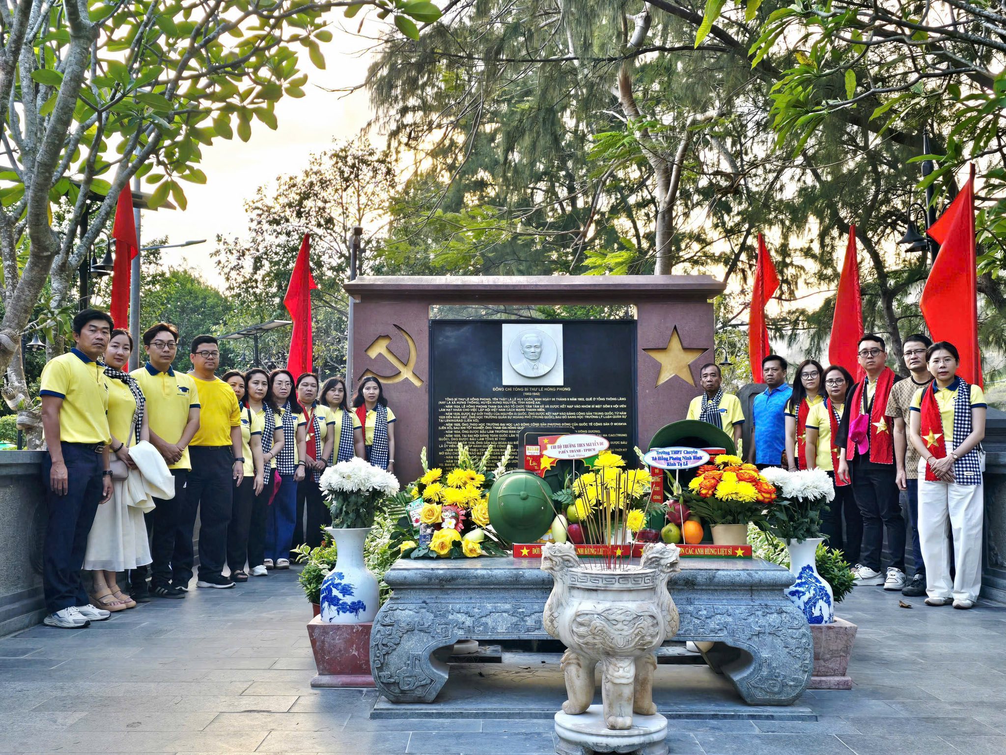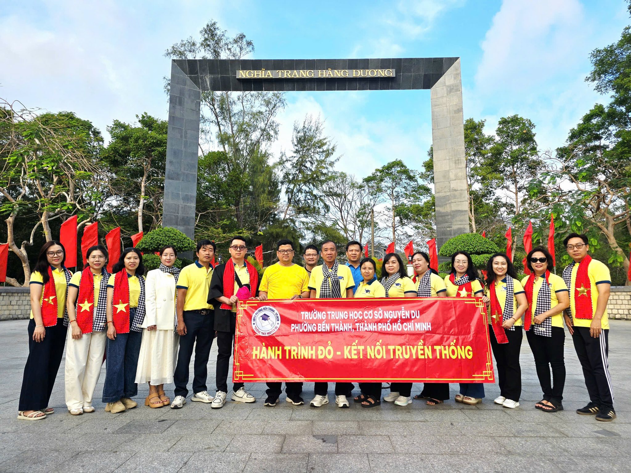 Cùng với đó, hành trình còn là dịp để tập thể Chi Bộ Trường THCS Nguyễn Du thành kính tưởng niệm và tri ân Tổng Bí thư Lê Hồng Phong cùng các nhà lãnh đạo, chiến sĩ cách mạng, những anh hùng liệt sĩ đã hiến dâng trọn đời mình cho sự nghiệp giải phóng dân tộc, thống nhất đất nước tại Nghĩa trang Hàng Dương. Mỗi phần mộ là một câu chuyện lịch sử, mỗi cái tên là một ngọn lửa thắp sáng niềm tin cách mạng.