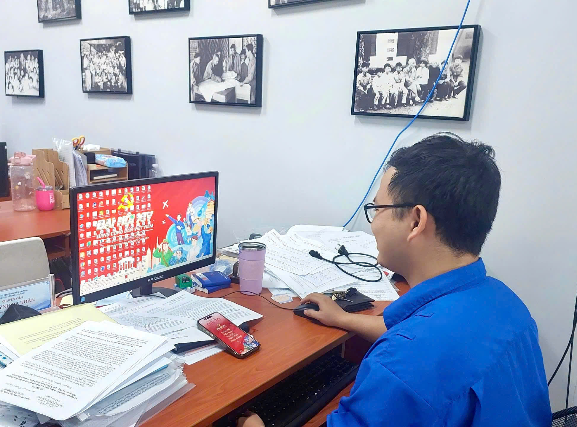 Hòa chung khí thế thi đua sôi nổi đó, Chi đoàn cơ quan Ủy ban nhân dân phường Bến Thành đã triển khai hoạt động thay đổi hình nền máy tính và điện thoại theo bộ hình nền đặc biệt của Tuổi trẻ Việt Nam chào mừng Đại hội XIV của Đảng. Đây là hoạt động mang ý nghĩa tuyên truyền sâu rộng, thể hiện vai trò xung kích, sáng tạo của đoàn viên, thanh niên trong việc ứng dụng công nghệ, lan tỏa hình ảnh, thông điệp tích cực về Đại hội Đảng, góp phần bồi đắp niềm tự hào, ý thức chính trị và trách nhiệm của tuổi trẻ đối với sự nghiệp cách mạng của Đảng và dân tộc.