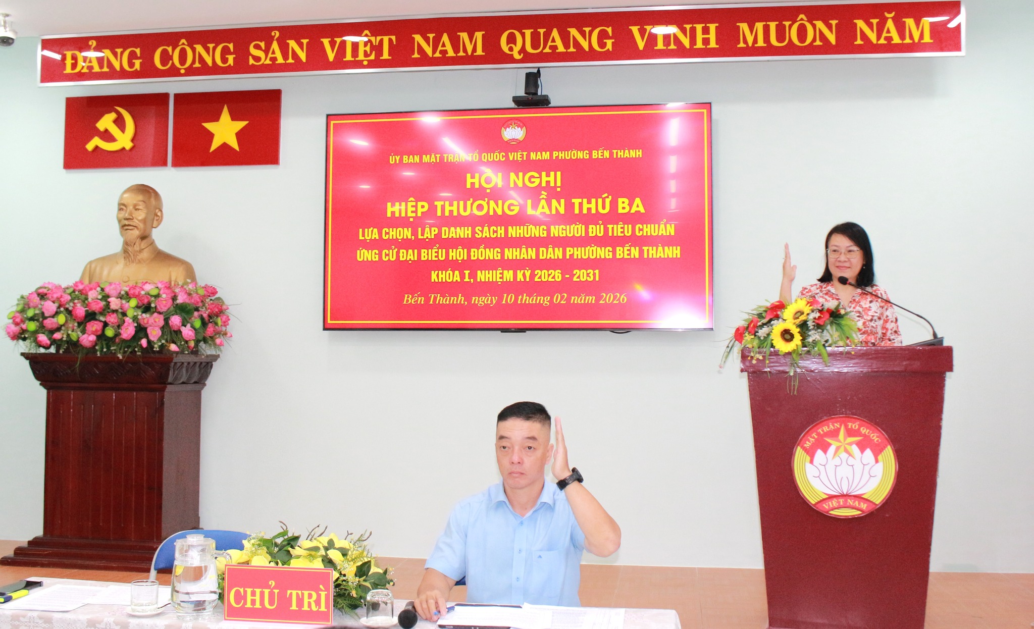 Sáng 10/2, Ban Thường trực Ủy ban MTTQ Việt Nam phường Bến Thành tổ chức Hội nghị Hiệp thương lần thứ ba để lựa chọn, lập danh sách những người đủ tiêu chuẩn ứng cử đại biểu Hội đồng nhân dân (HĐND) phường Bến Thành khóa I, nhiệm kỳ 2026 – 2031.