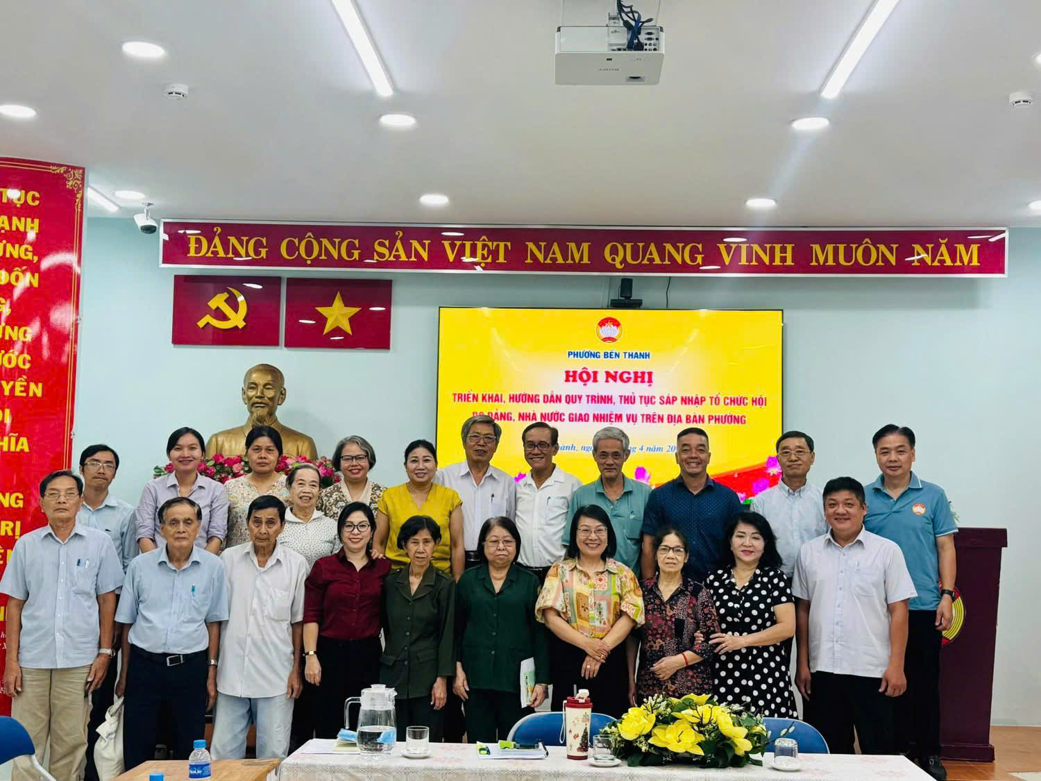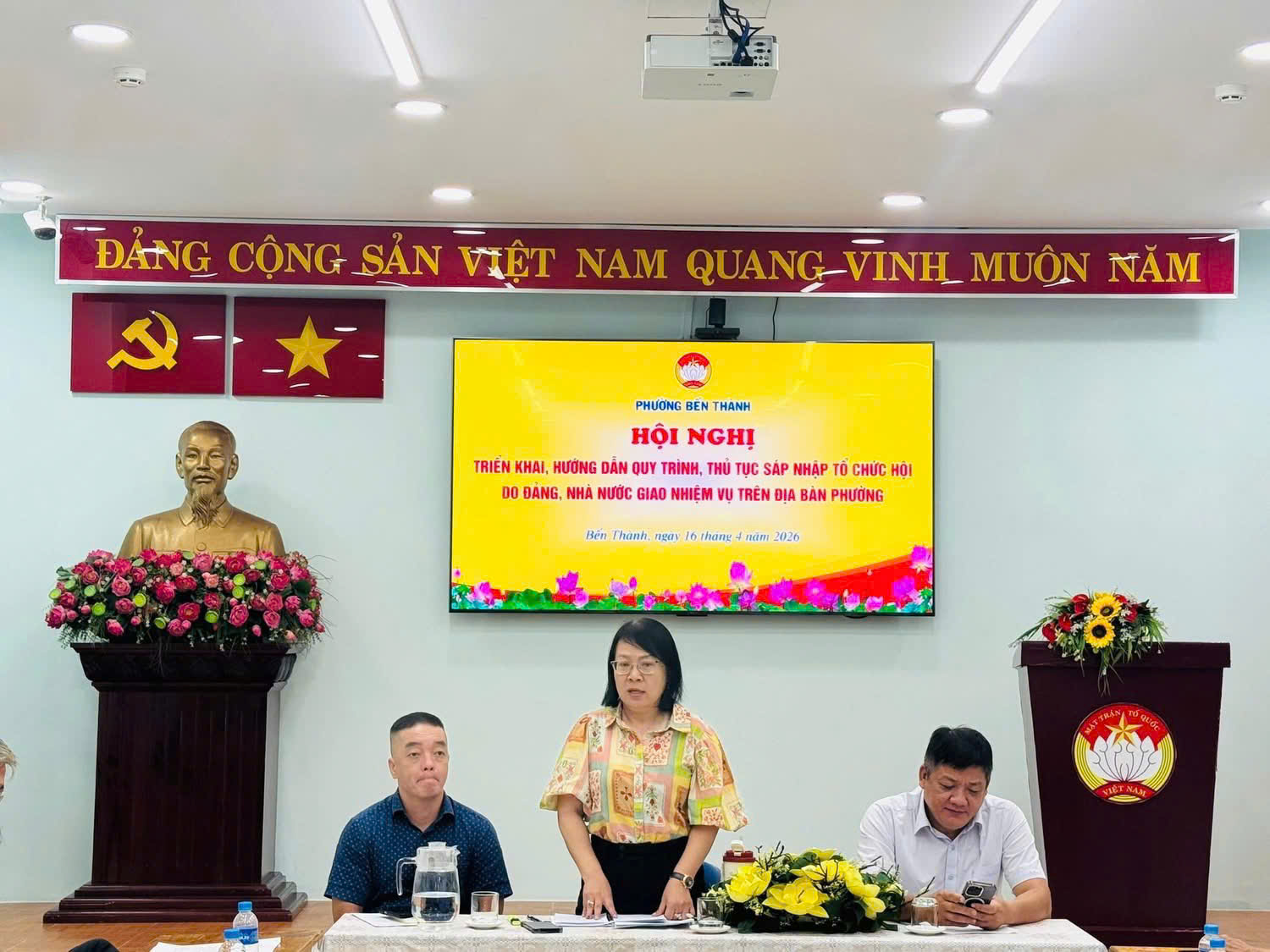 Sáng ngày 16/4/2026, Ủy ban MTTQ Việt Nam phường Bến Thành đã tổ chức Hội nghị triển khai, hướng dẫn quy trình, thủ tục sáp nhập các tổ chức Hội do Đảng, Nhà nước giao nhiệm vụ trên địa bàn phường. Hội nghị nhằm quán triệt chủ trương, thống nhất nhận thức và đảm bảo việc thực hiện sáp nhập các tổ chức Hội được tiến hành đúng quy định, chặt chẽ, hiệu quả.