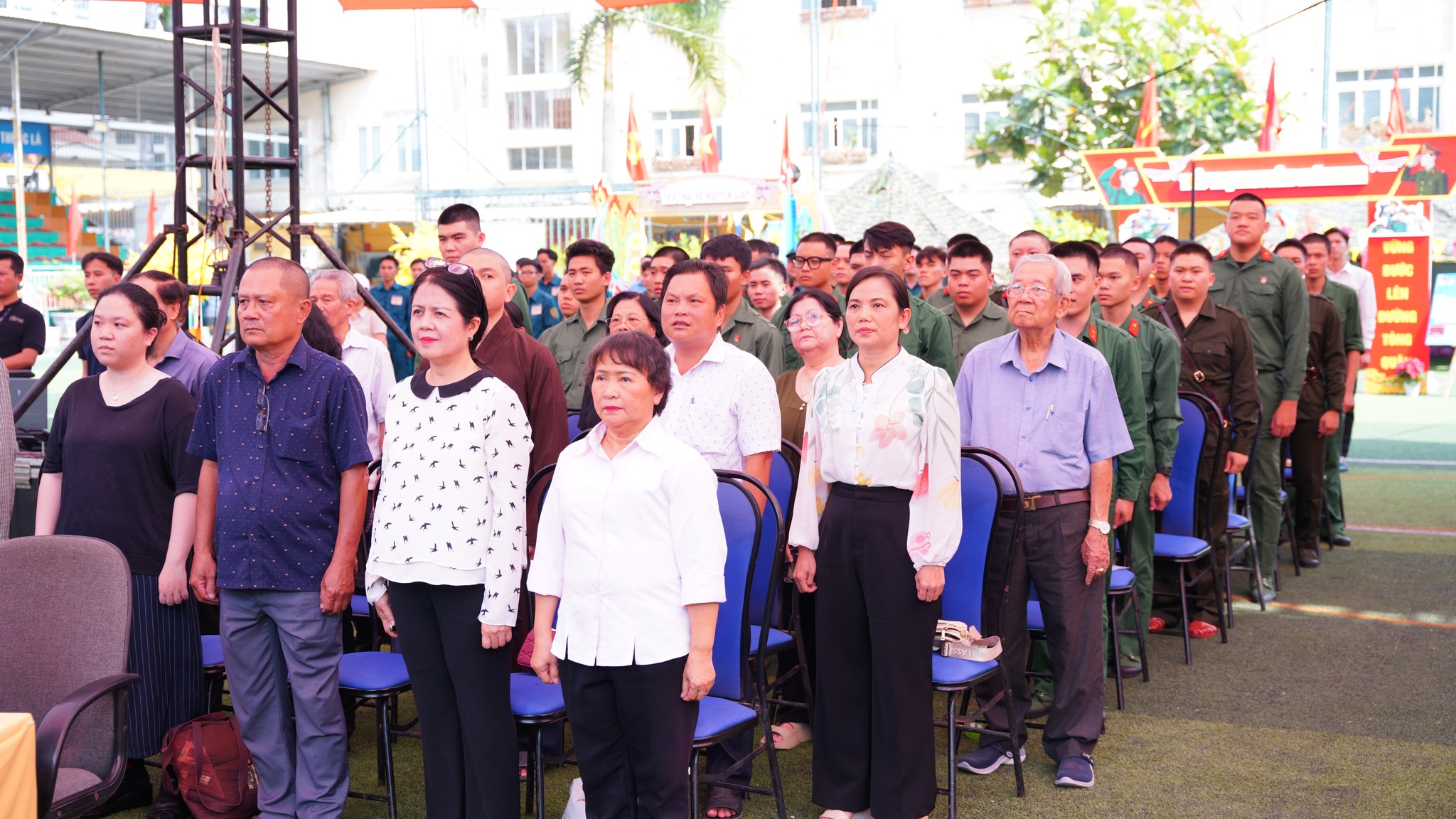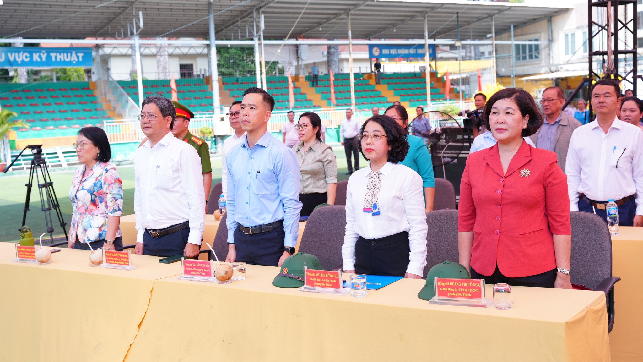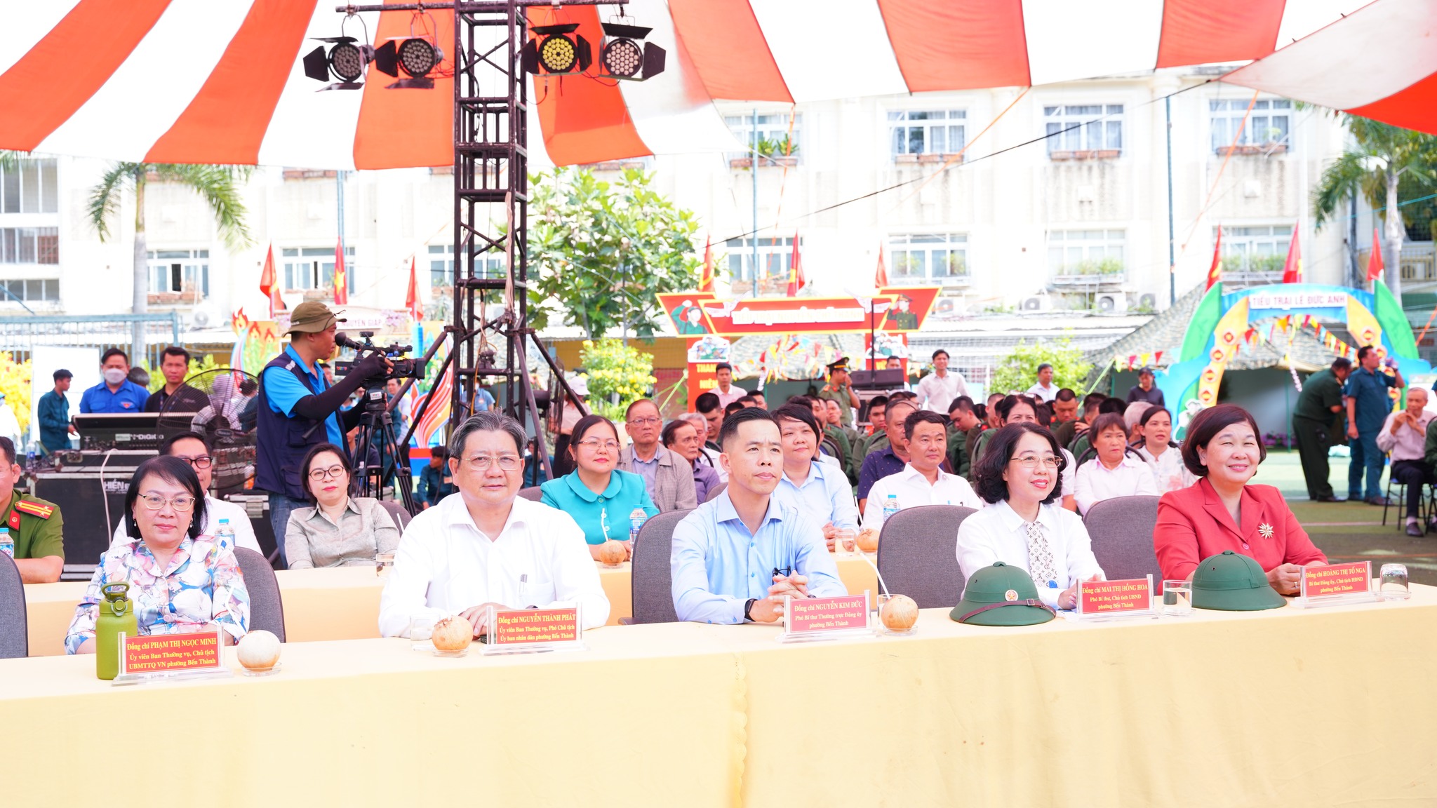 Tham dự có các đồng chí: Trung tá Trần Duy Khánh, Phó Chủ nhiệm hậu cần kỹ thuật Bộ Tư lệnh TPHCM; Hoàng Thị Tố Nga, Bí thư Đảng ủy, Chủ tịch HĐND phường; Nguyễn Kim Đức, Phó Bí thư Thường trực Đảng uỷ phường; Mai Thị Hồng Hoa, Phó Bí thư Đảng uỷ, Chủ tịch UBND phường, Chủ tịch Hội đồng nghĩa vụ Quân sự phường; Phạm Thị Ngọc Minh, Uỷ viên Ban Thường vụ Đảng uỷ, Chủ tịch Uỷ ban MTTQ Việt Nam phường. Cùng các đồng chí trong Ban Thường vụ Đảng ủy; đại diện lãnh đạo các phòng, ban chuyên môn, thành viên Hội đồng nghĩa vụ quân sự phường; các đồng chí là cán bộ, chiến sĩ, Dân quân thường trực, cán bộ Đoàn, đoàn viên, thanh niên. Đặc biệt là sự có mặt của 56 bạn thanh niên phường Bến Thành trúng tuyển nghĩa vụ Quân sự và nghĩa vụ Công an năm 2026.