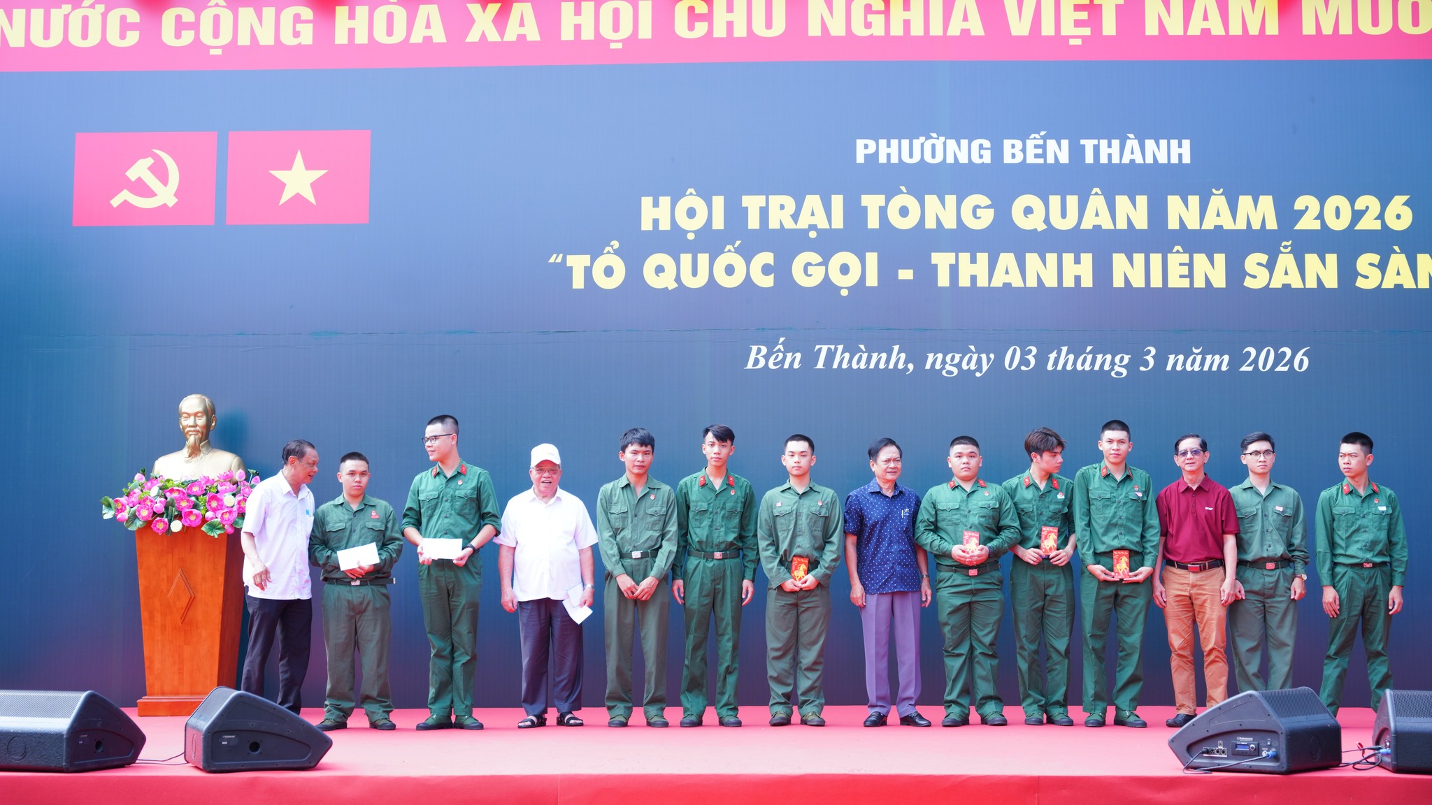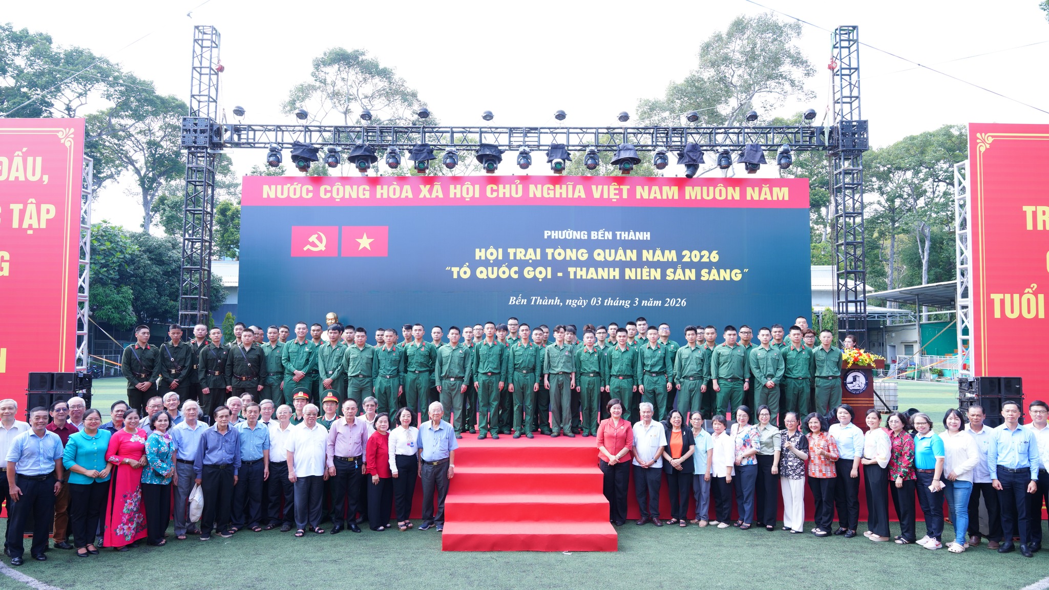 Chiều 3/3, Hội đồng nghĩa vụ quân sự phường Bến Thành tổ chức khai mạc Hội trại Tòng quân năm 2026 với chủ đề: “Tổ quốc gọi – Thanh niên sẵn sàng” tiễn thanh niên phường Bến Thành lên đường nhập ngũ năm 2026.