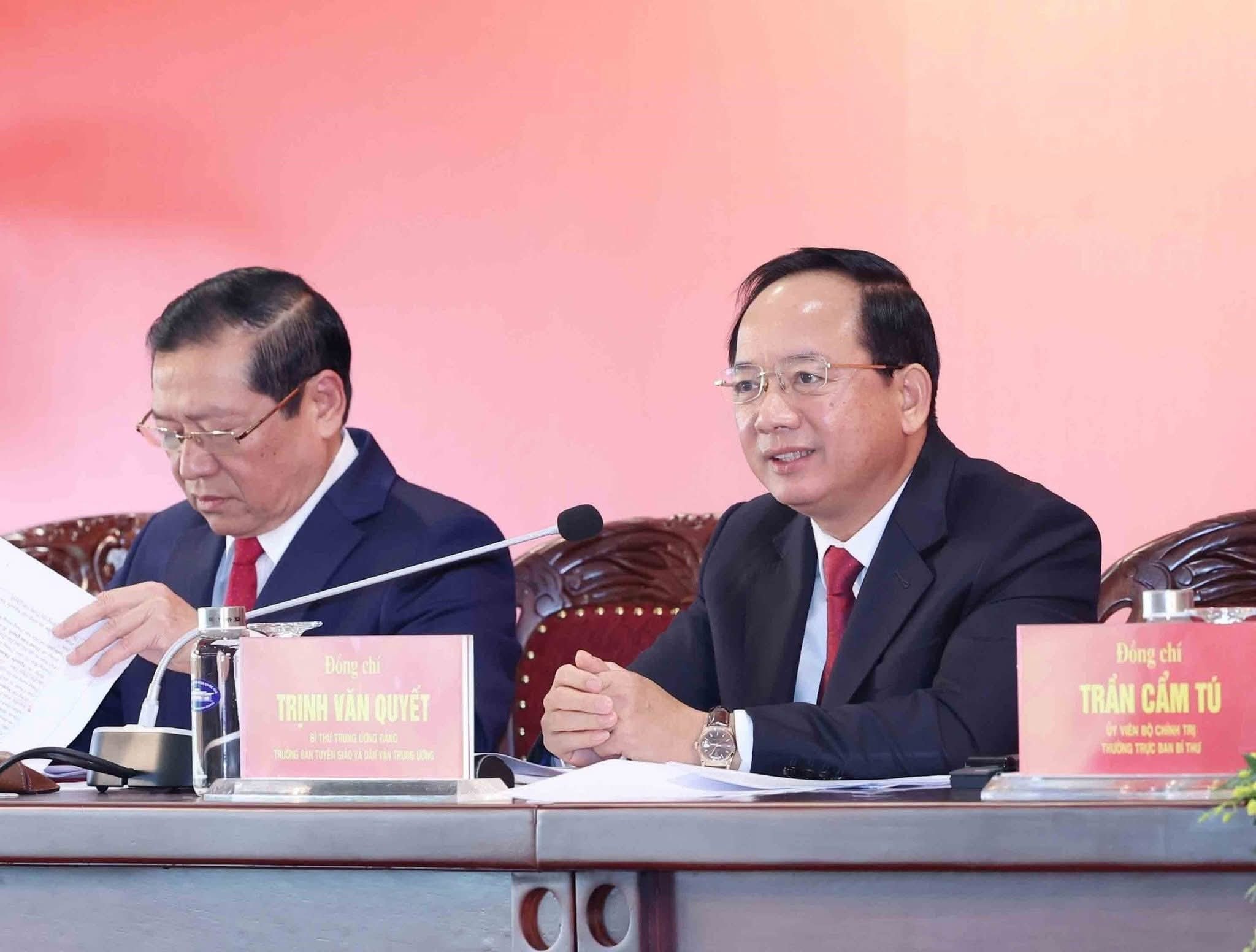 Ngay sau đó, đồng chí Trần Cẩm Tú, Uỷ viên Bộ Chính trị, Thường trực Ban Bí thư, Trưởng Tiểu ban Tổ chức phục vụ Đại hội đại biểu toàn quốc lần thứ XIV của Đảng chủ trì Họp báo quốc tế về Đại hội XIV của Đảng.