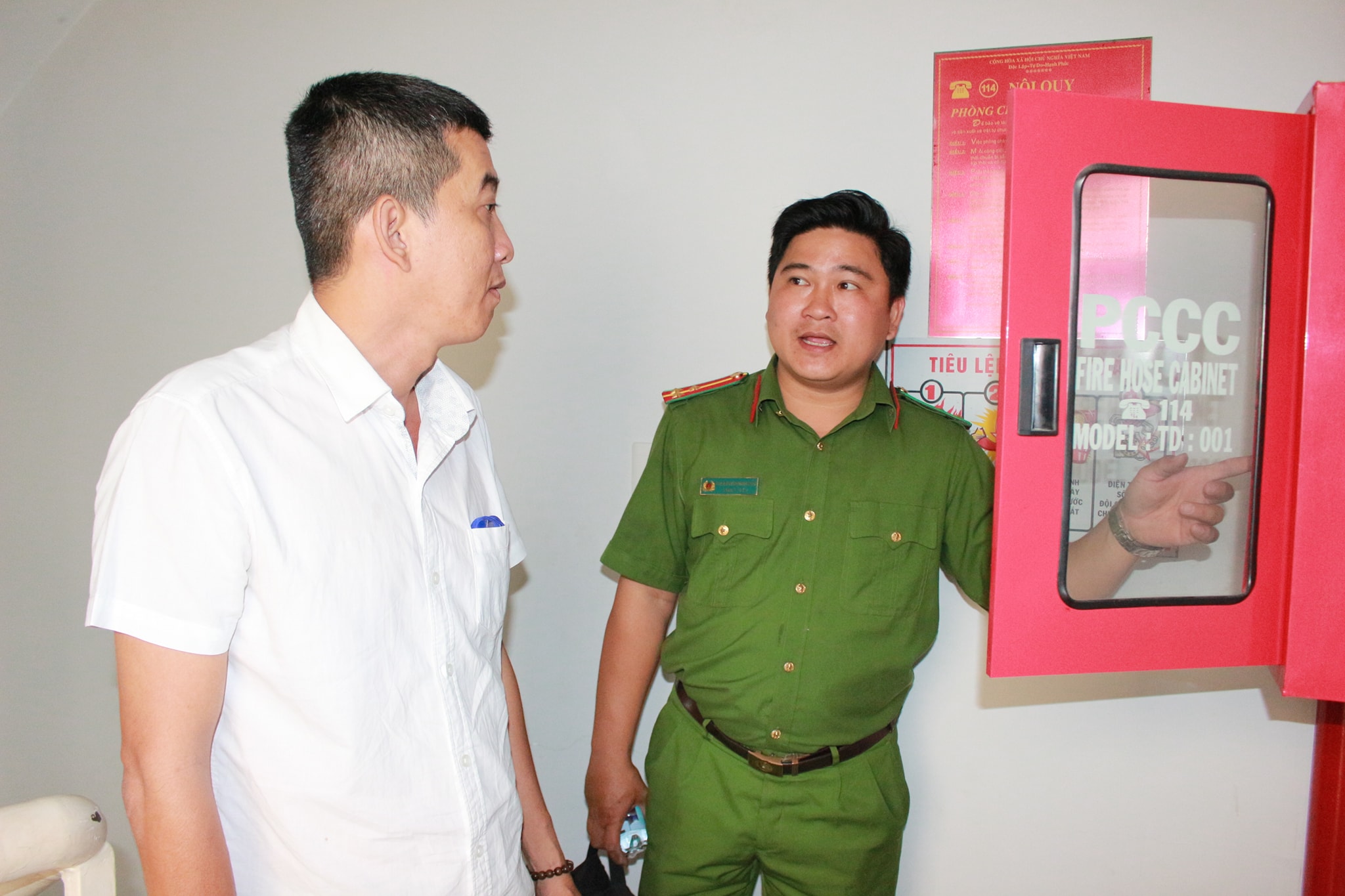 Bên cạnh phần lý thuyết, Thượng úy Trần Huỳnh Minh Hiếu cũng hướng dẫn chi tiết việc kiểm tra định kỳ hệ thống báo cháy tự động, bao gồm: Đầu báo khói, đầu báo nhiệt, nút ấn báo cháy, chuông báo cháy và đèn chỉ thị. Phân công nhiệm vụ khi xảy ra tình huống khẩn cấp, cần giữ bình tĩnh, nhanh chóng báo động để mọi người biết, tổ chức thoát nạn và sử dụng hiệu quả các phương tiện chữa cháy tại chỗ.