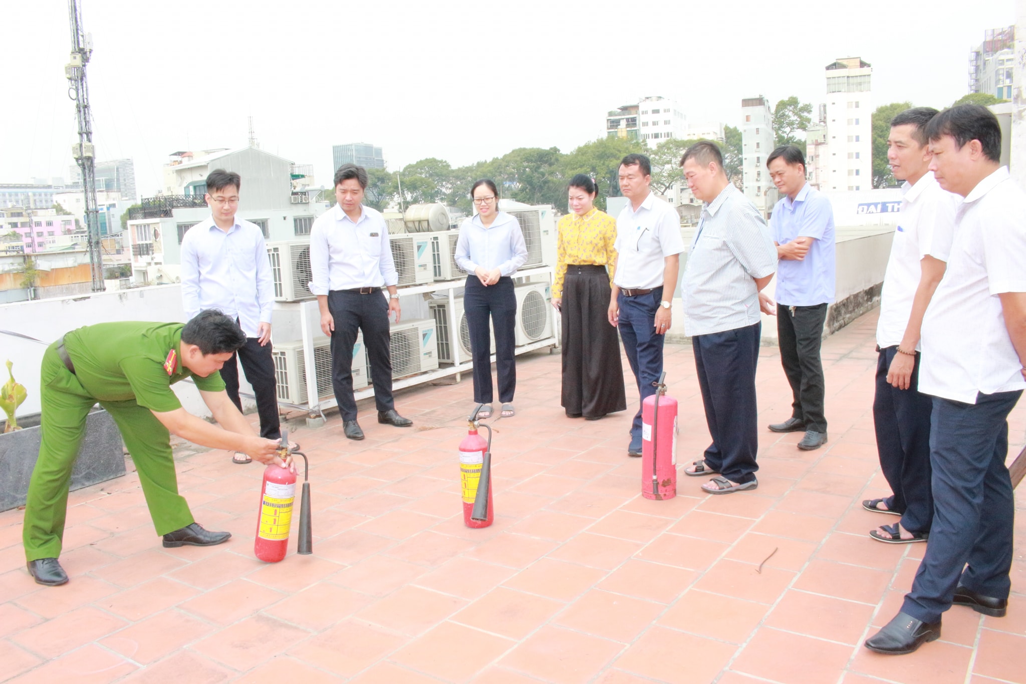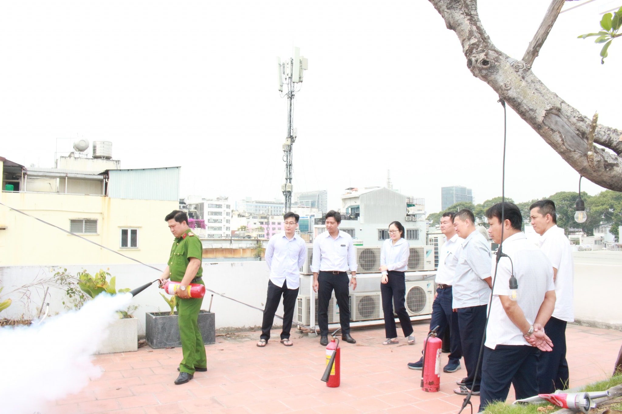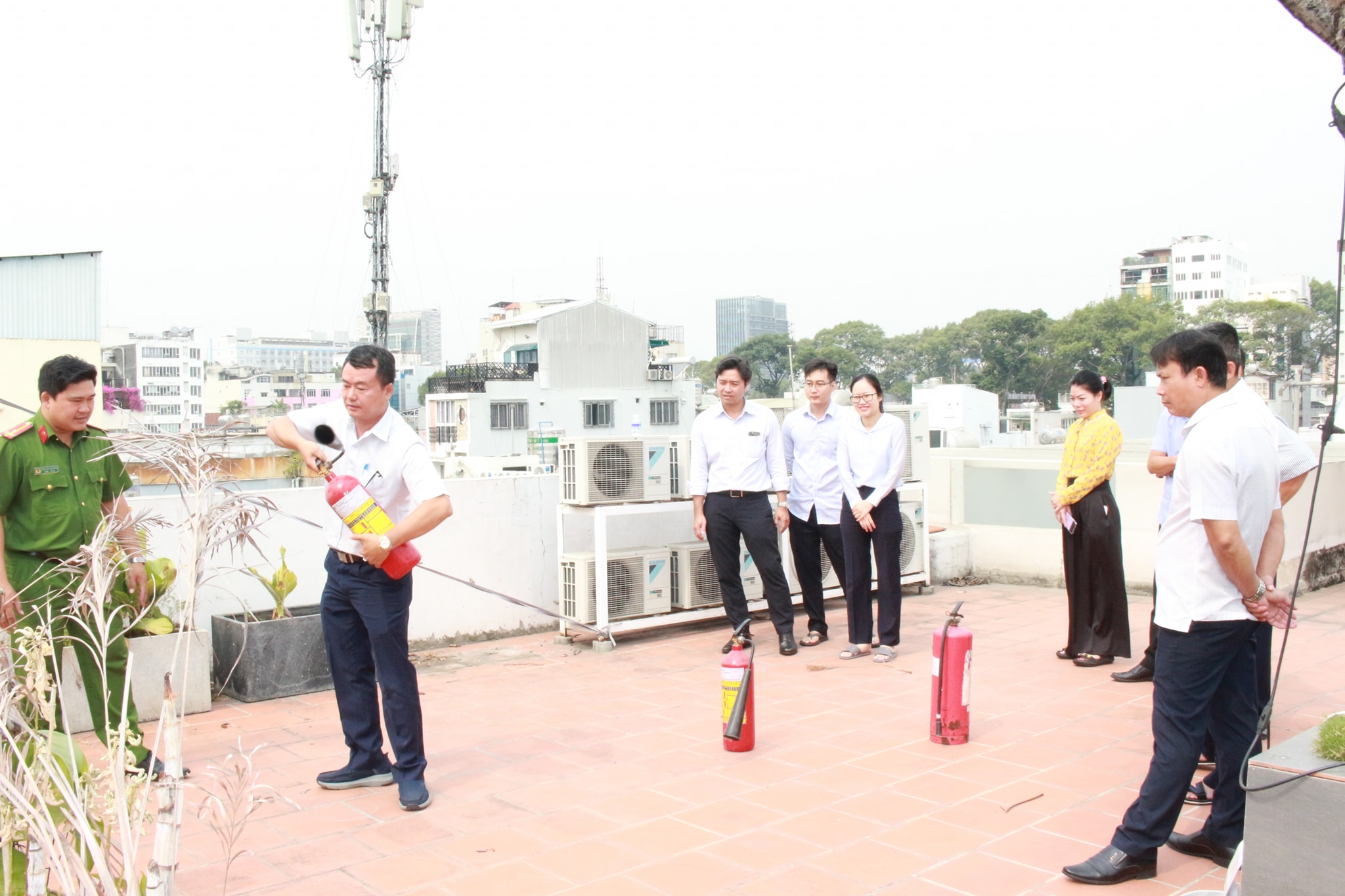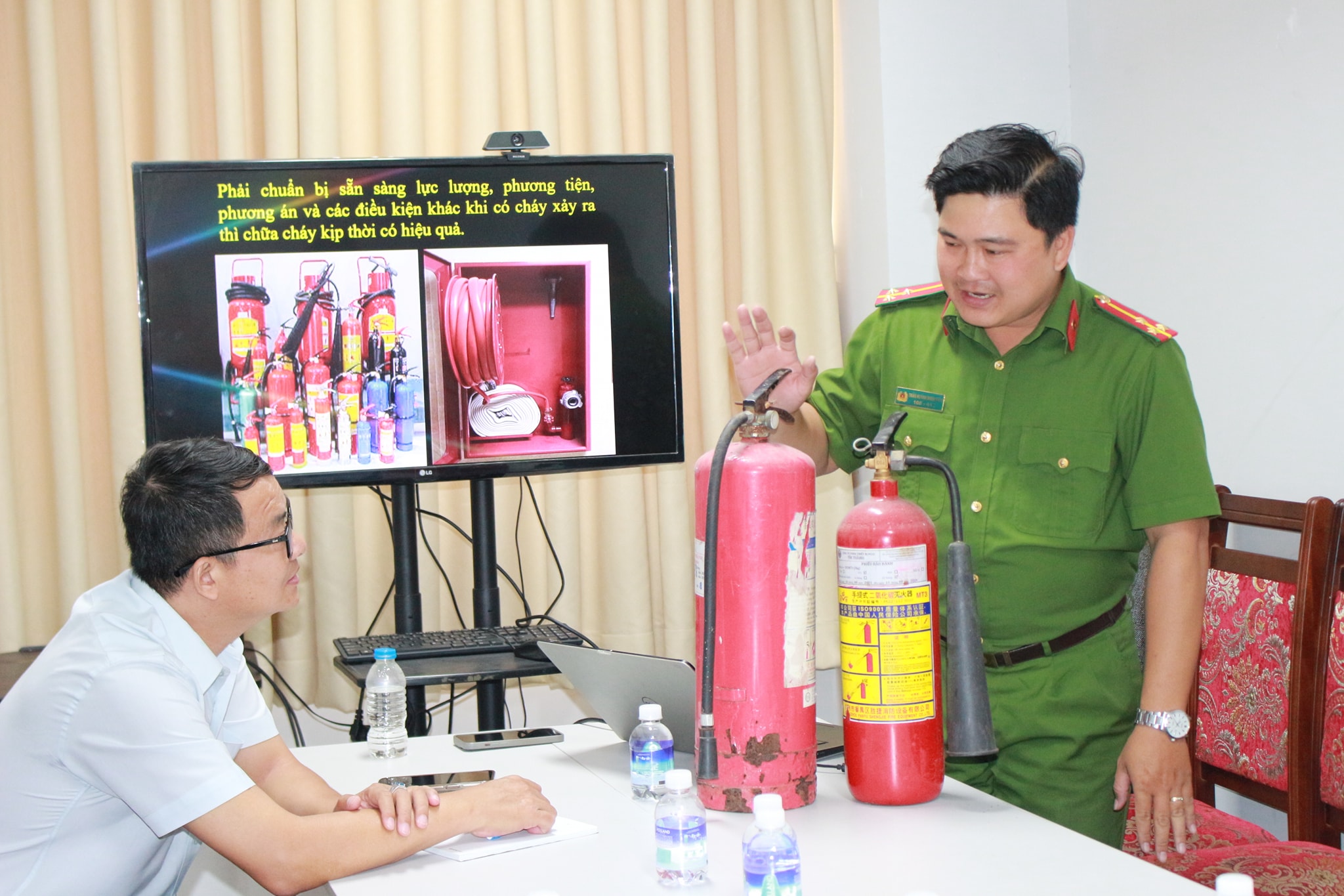 Đặc biệt, dưới sự hướng dẫn của Thượng úy Trần Huỳnh Minh Hiếu, các cán bộ, công chức và lực lượng PCCC tại chỗ đã trực tiếp thực hành sử dụng bình chữa cháy; kỹ năng dập tắt đám cháy tại chỗ; cách bảo quản, bảo dưỡng các trang thiết bị PCCC luôn trong tình trạng sẵn sàng để xử lý kịp thời khi sự cố xảy ra.