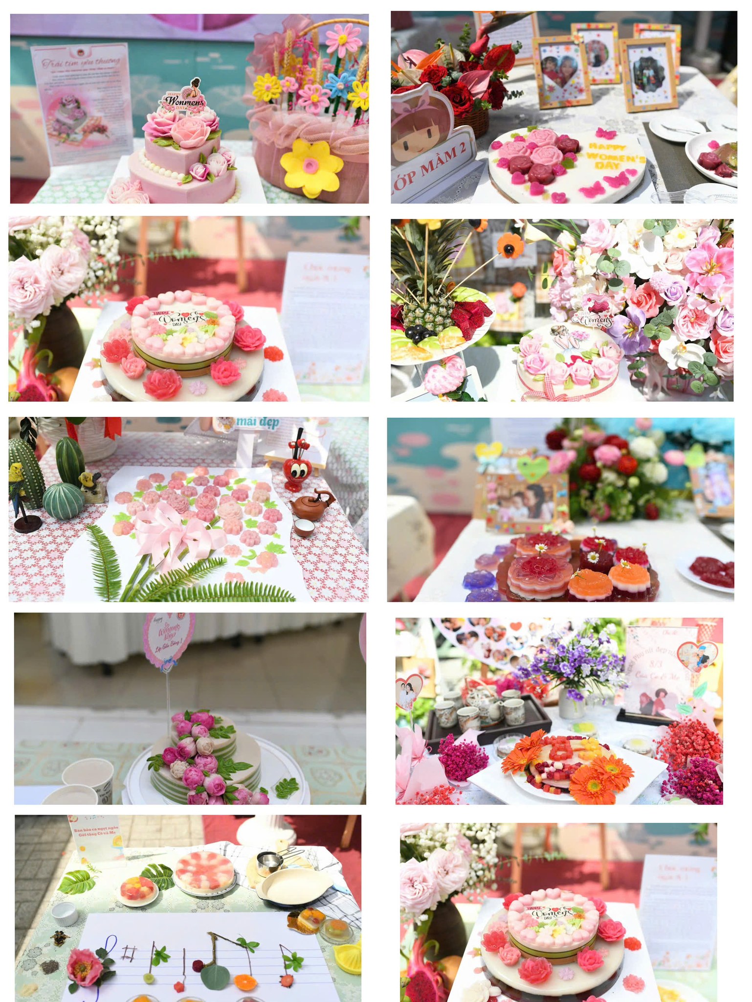 Các đội tham gia đã mang đến nhiều sản phẩm rau câu độc đáo, đẹp mắt với ý tưởng phong phú, thể hiện tinh thần phối hợp nhịp nhàng giữa các thành viên trong gia đình. Các bé rất hào hứng khi được cùng cha mẹ và cô giáo tham gia các công đoạn như pha màu, tạo hình, trang trí và giới thiệu ý tưởng sản phẩm.