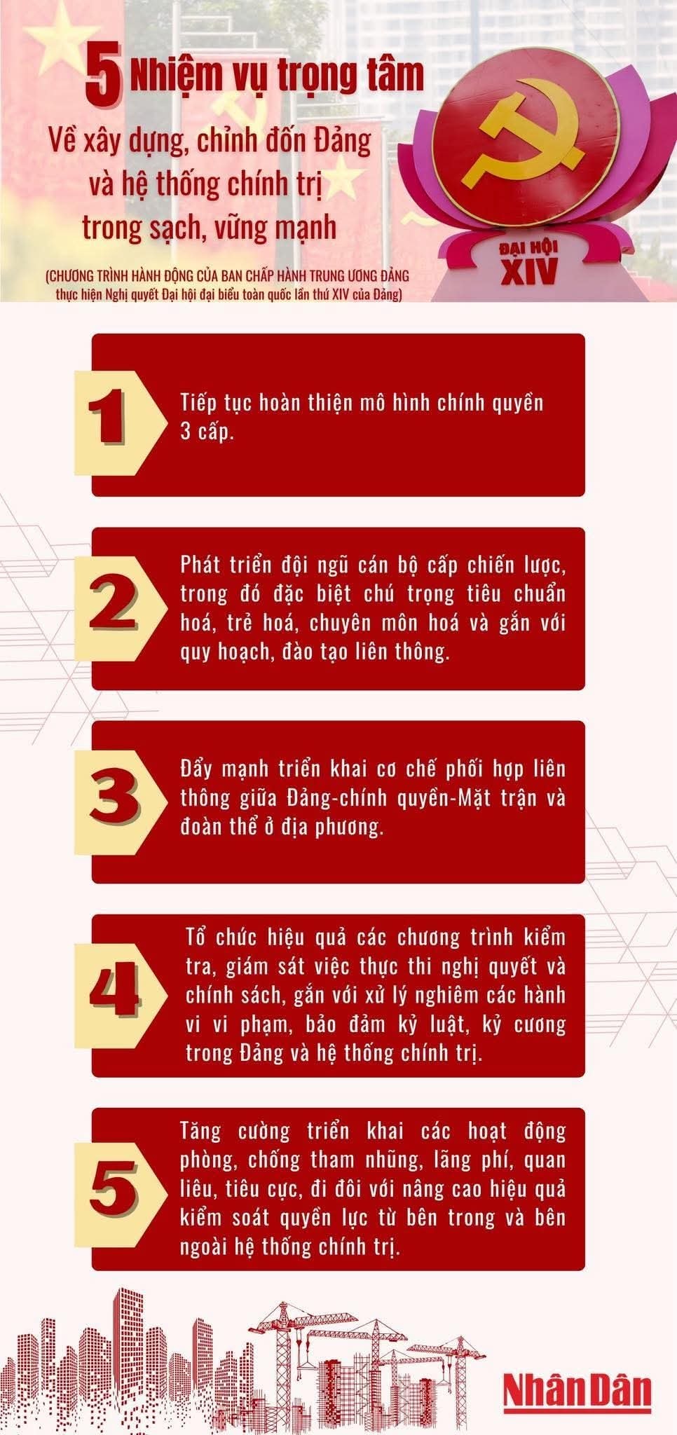 Nhiệm vụ trọng tâm về xây dựng, chỉnh đốn Đảng và hệ thống chính trị trong sạch, vững mạnh theo Chương trình hành động của Ban Chấp hành Trung ương Đảng thực hiện Nghị quyết Đại hội đại biểu toàn quốc lần thứ XIV của Đảng.