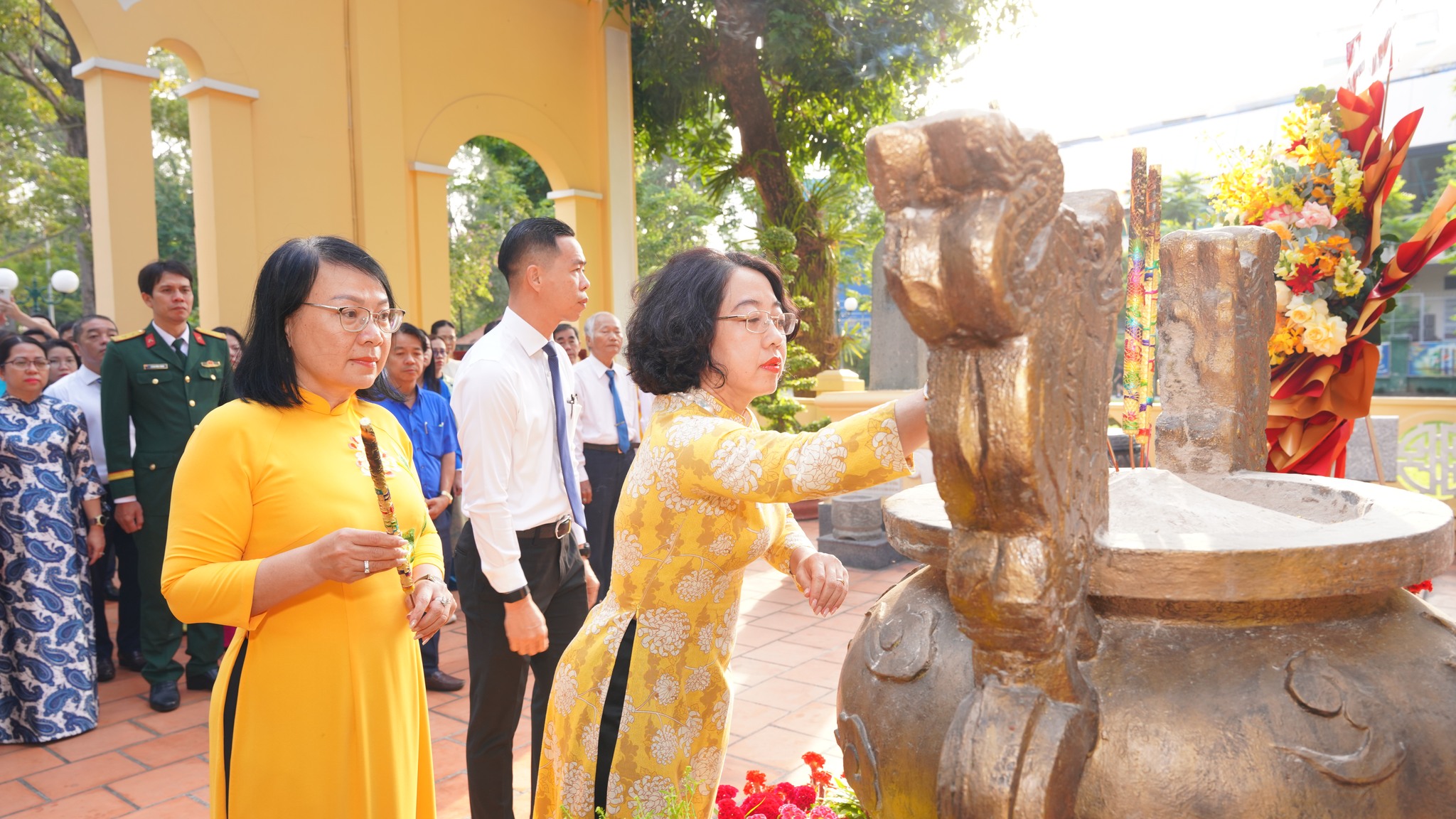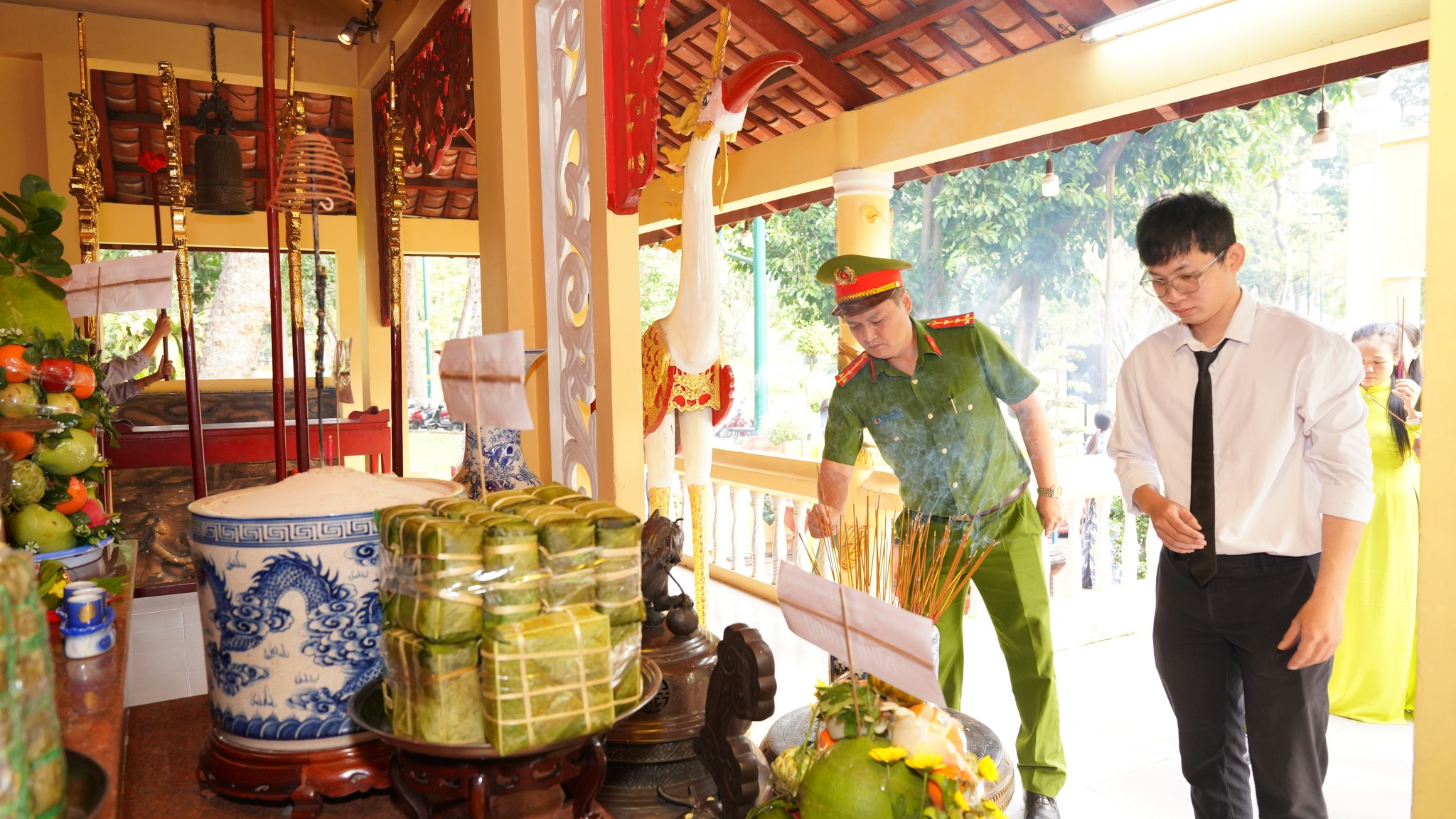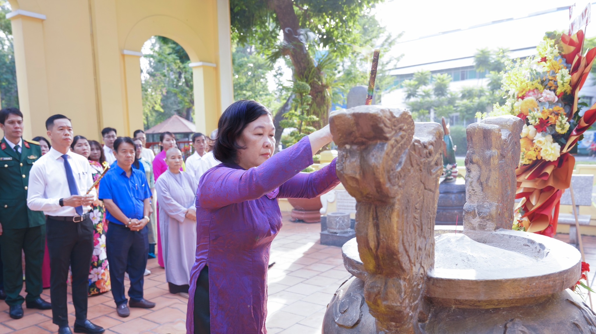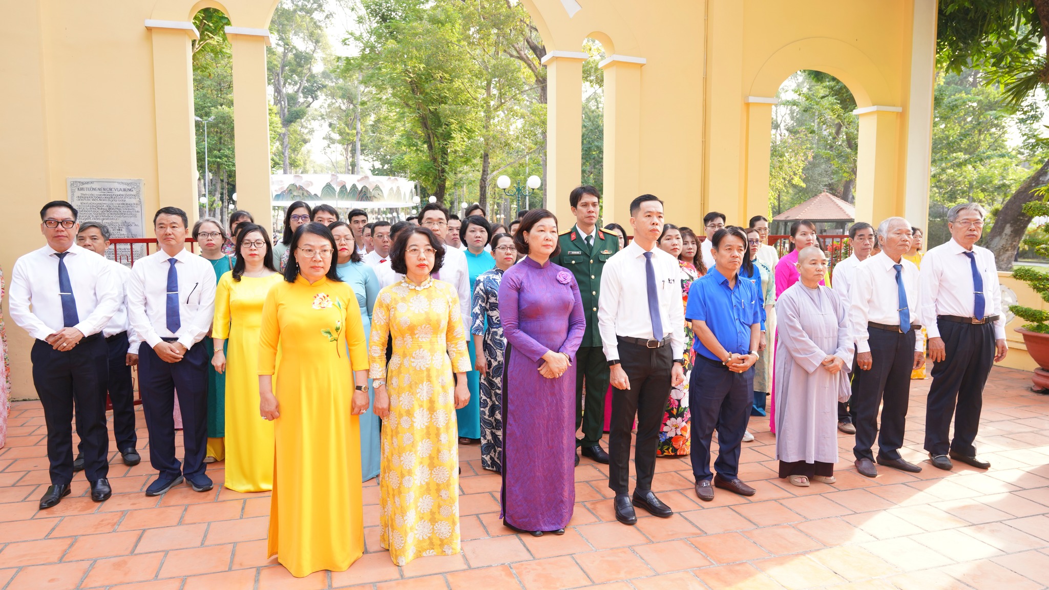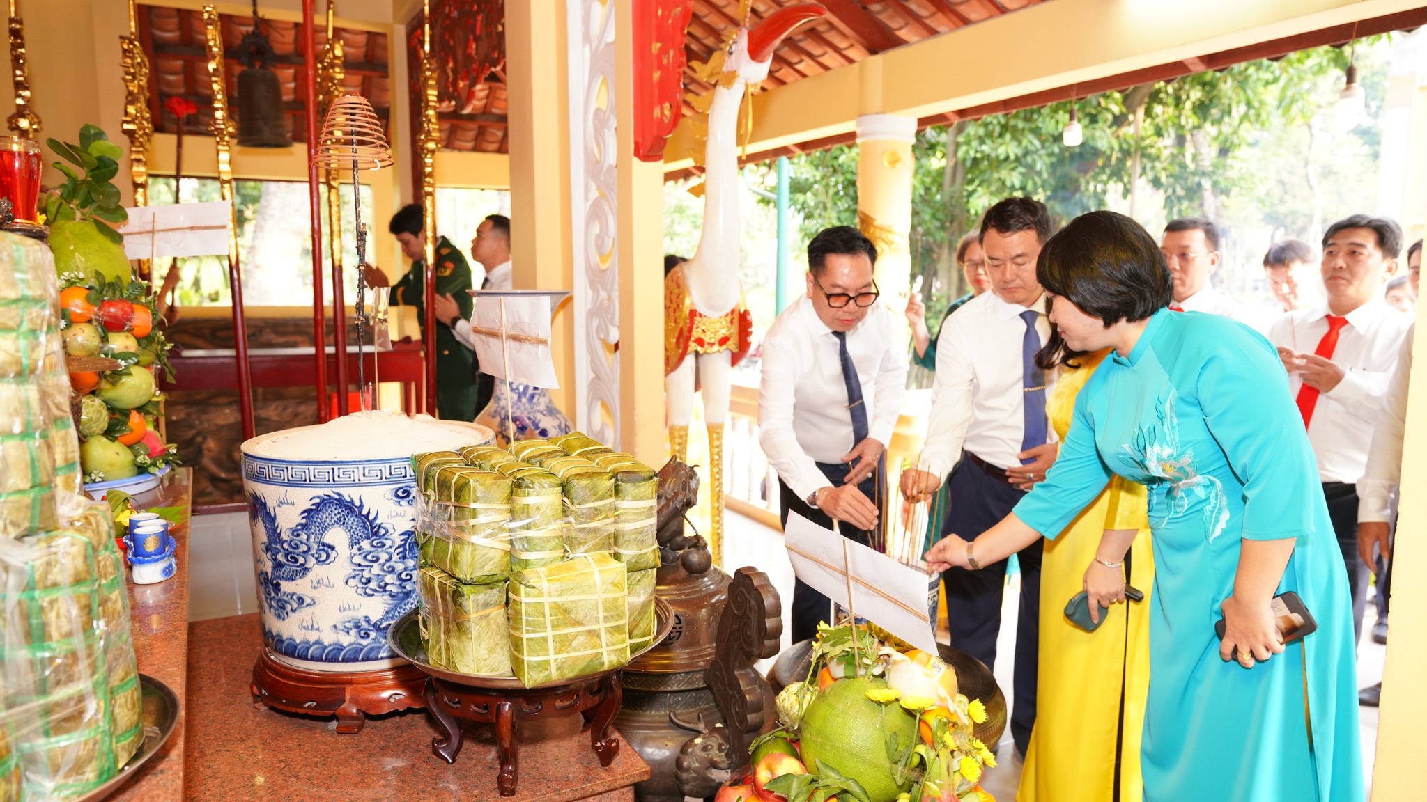 Trong không khí trang nghiêm, đoàn đại biểu thành kính hướng về Quốc tổ Hùng Vương, dâng hương tưởng nhớ tổ tiên, ghi tạc công đức to lớn của các Vua Hùng, các bậc tiền nhân đã khai phá, tạo dựng nên non nước Việt Nam giàu đẹp. đặt nền móng cho sự trường tồn của dân tộc Việt Nam
