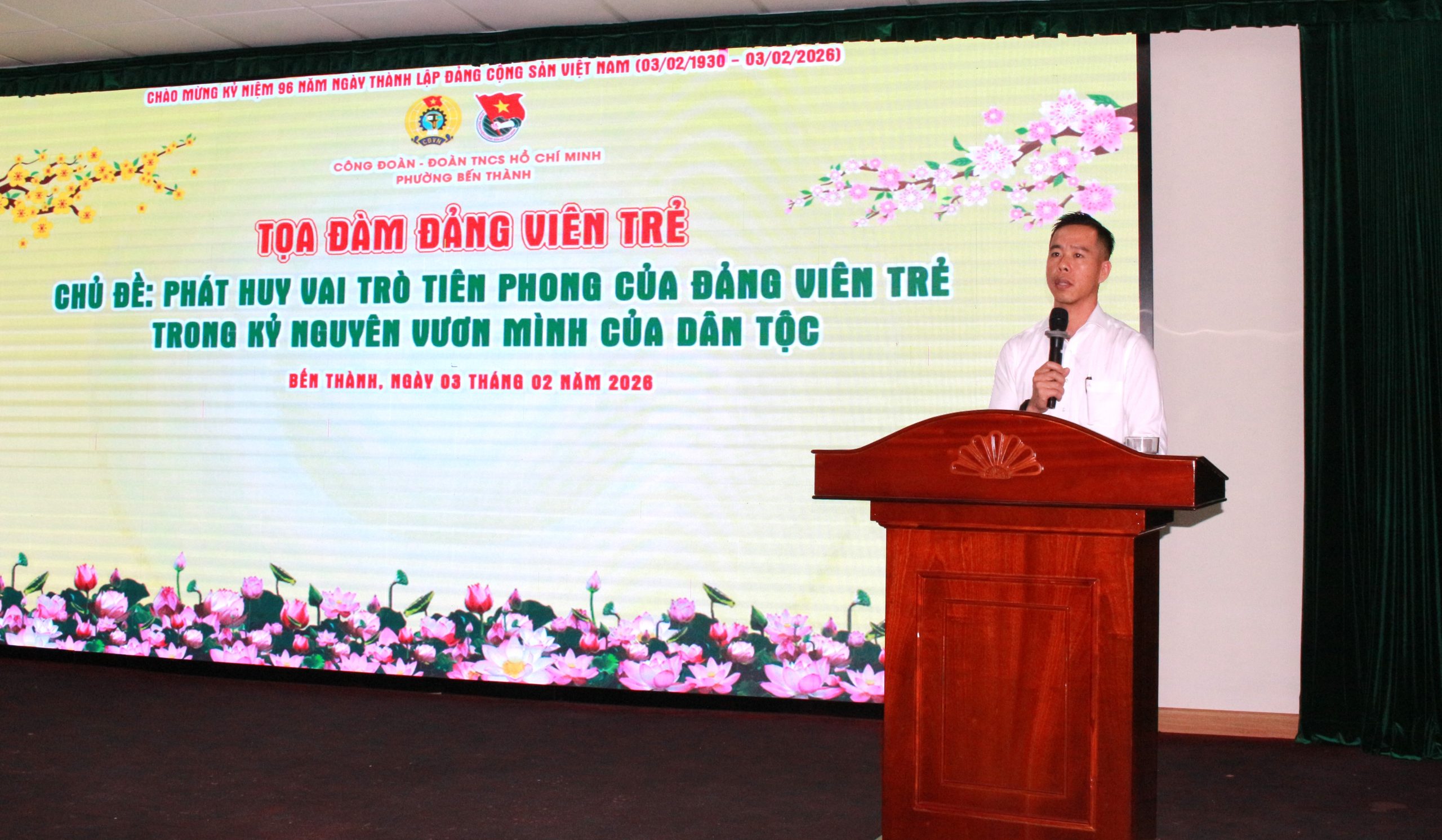 Phát biểu chỉ đạo tại buổi tọa đàm, đồng chí Nguyễn Kim Đức, Phó Bí thư Thường trực Đảng ủy phường Bến Thành nhấn mạnh: mỗi cán bộ, đảng viên, đặc biệt là đảng viên trẻ cần xác định rõ vai trò và trách nhiệm của bản thân trong kỷ nguyên phát triển mới của dân tộc.