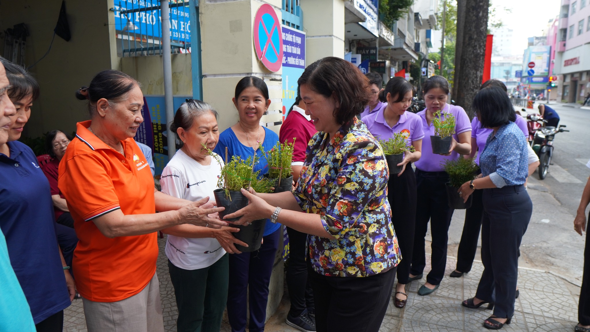 Dịp này, Khu phố 27 trao cây xanh cho phường Bến Thành, đại diện các chi hội đoàn thể và Nhân dân khu phố 26 và Khu phố 27…