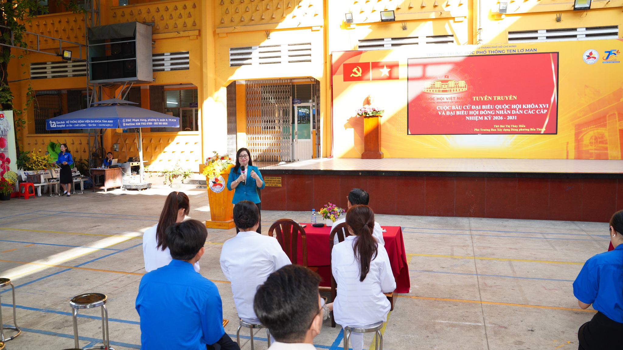 Tại buổi lễ, đồng chí Bùi Thị Thúy Hiền, Đảng ủy viên, Phó Trưởng Ban Xây dựng Đảng phường Bến Thành đã tuyên truyền ý nghĩa, tầm quan trọng về bầu cử đại biểu Quốc hội khóa XVI và bầu cử đại biểu Hội đồng nhân dân các cấp nhiệm kỳ 2026 – 2031 cho đoàn viên thanh niên và cử tri trẻ lần đầu tiên đi bầu cử.