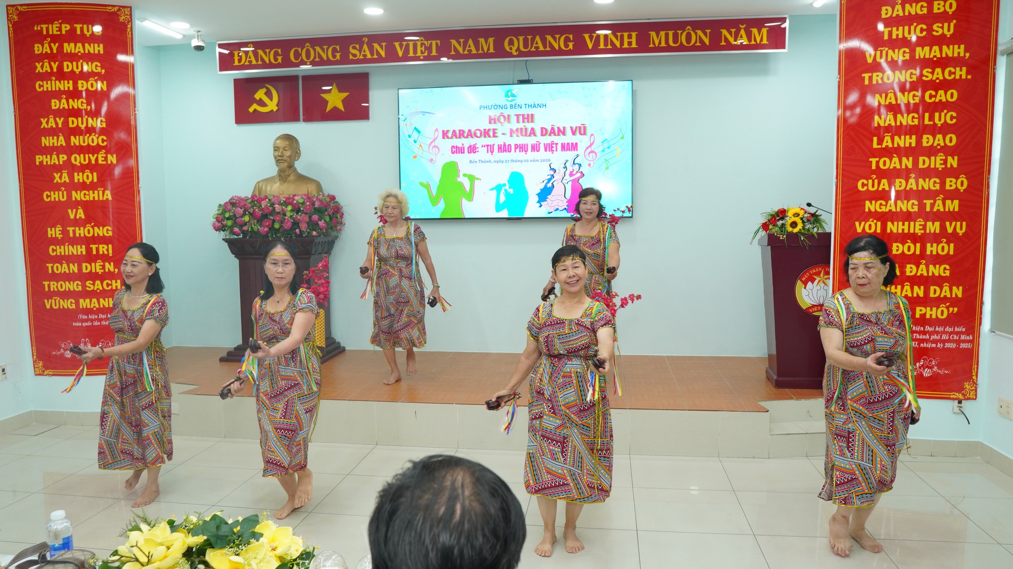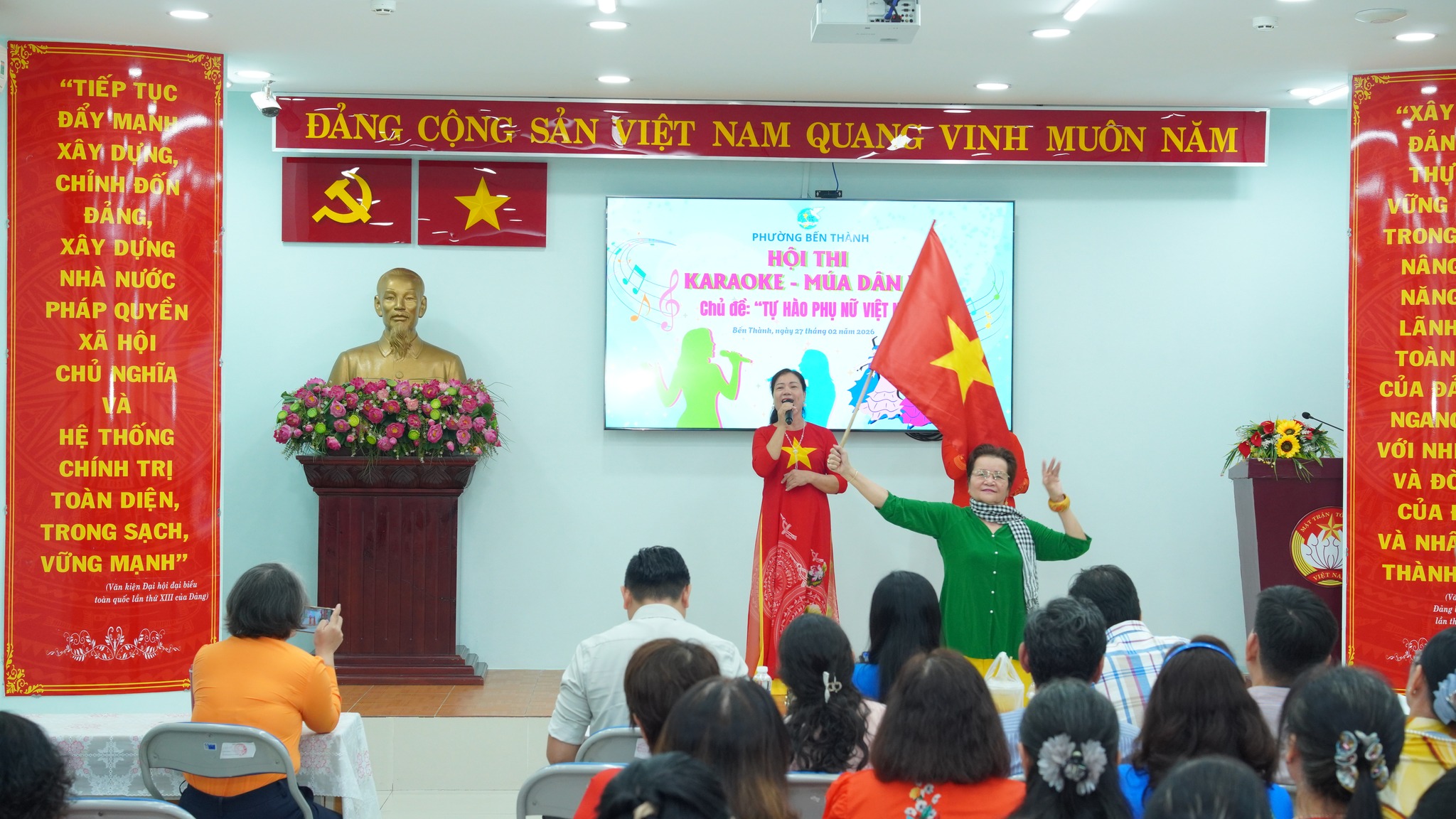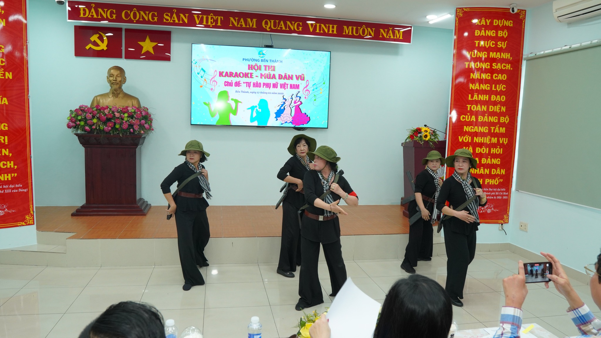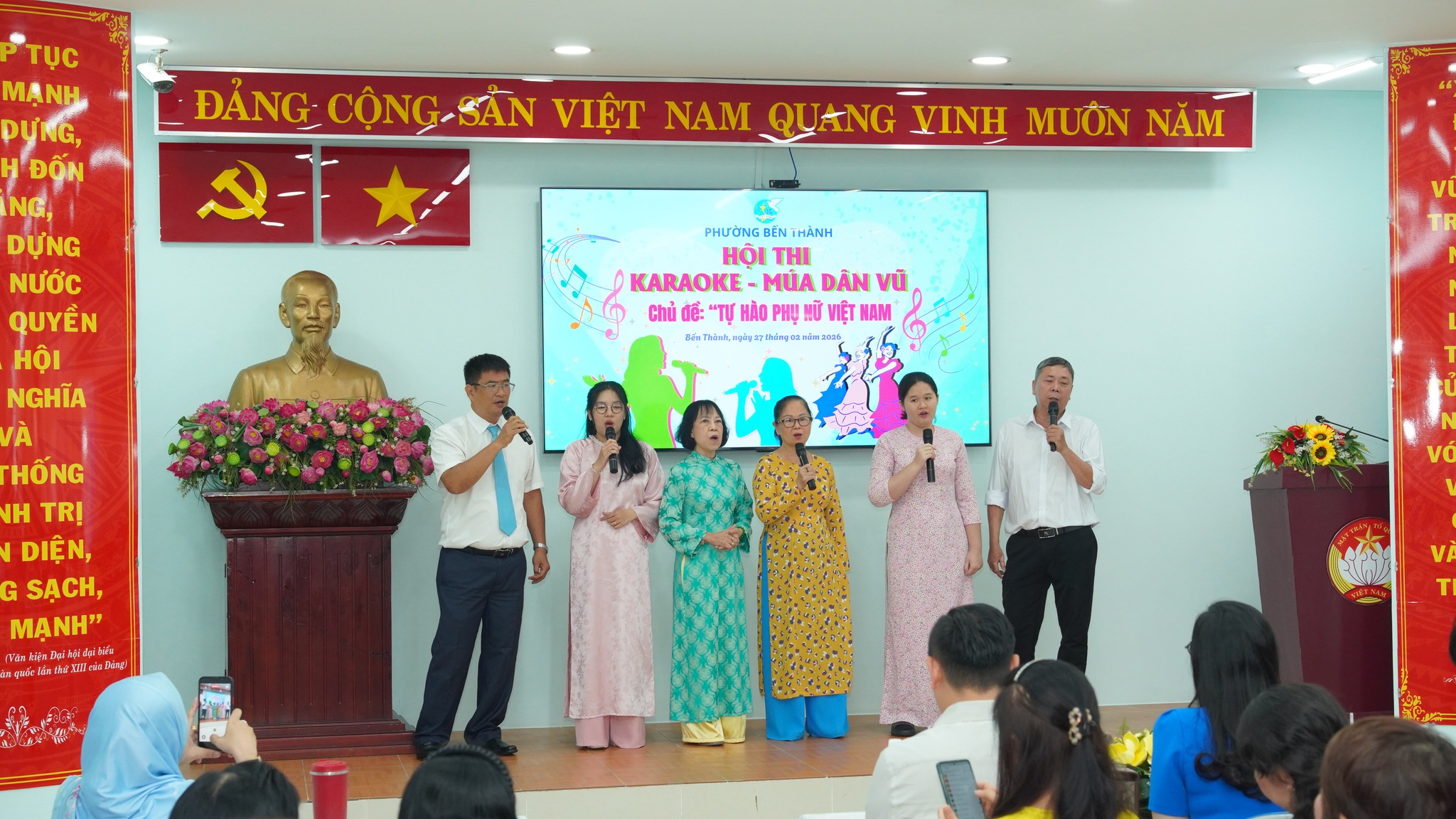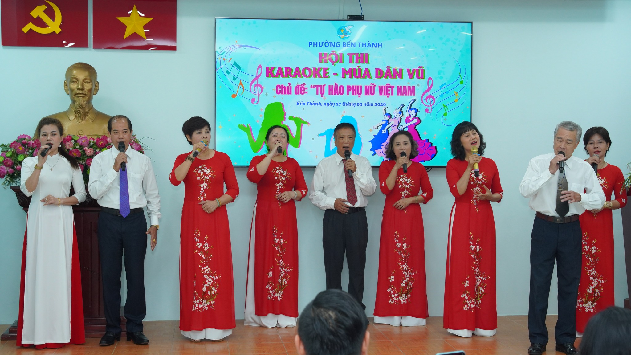 Ngày 27/2, Hội Liên hiệp Phụ nữ phường Bến Thành tổ chức Hội thi Karaoke – Múa dân vũ với chủ đề “Tự hào phụ nữ Việt Nam”. Tham dự có các đồng chí: Phạm Thị Ngọc Minh, Ủy viên Ban Thường vụ Đảng ủy, Chủ tịch Ủy ban MTTQ Việt Nam phường; Bùi Thị Thúy Hiền, Đảng ủy viên, Phó Trưởng Ban Xây dựng Đảng phường; Trần Huy Diễn, Phụ trách phòng Văn hóa – Du lịch Trung tâm Cung ứng dịch vụ công phường Bến Thành; Trương Văn Trí, đạo diễn trường Đại học Sân khấu Điện ảnh TPHCM.