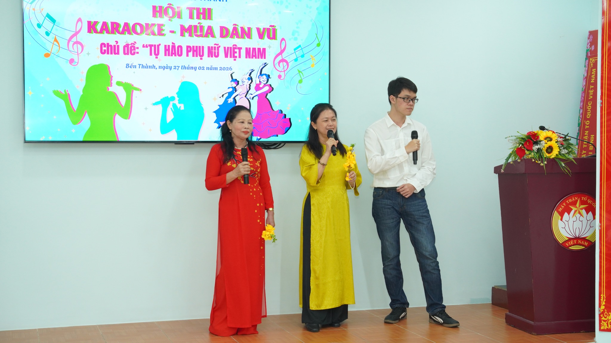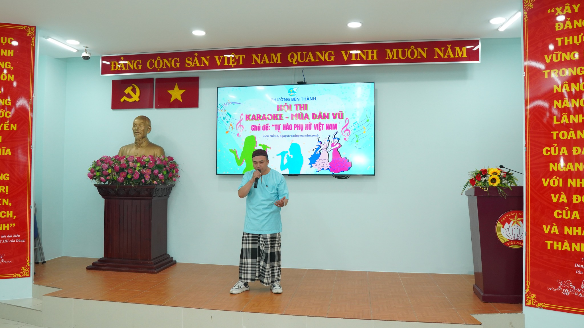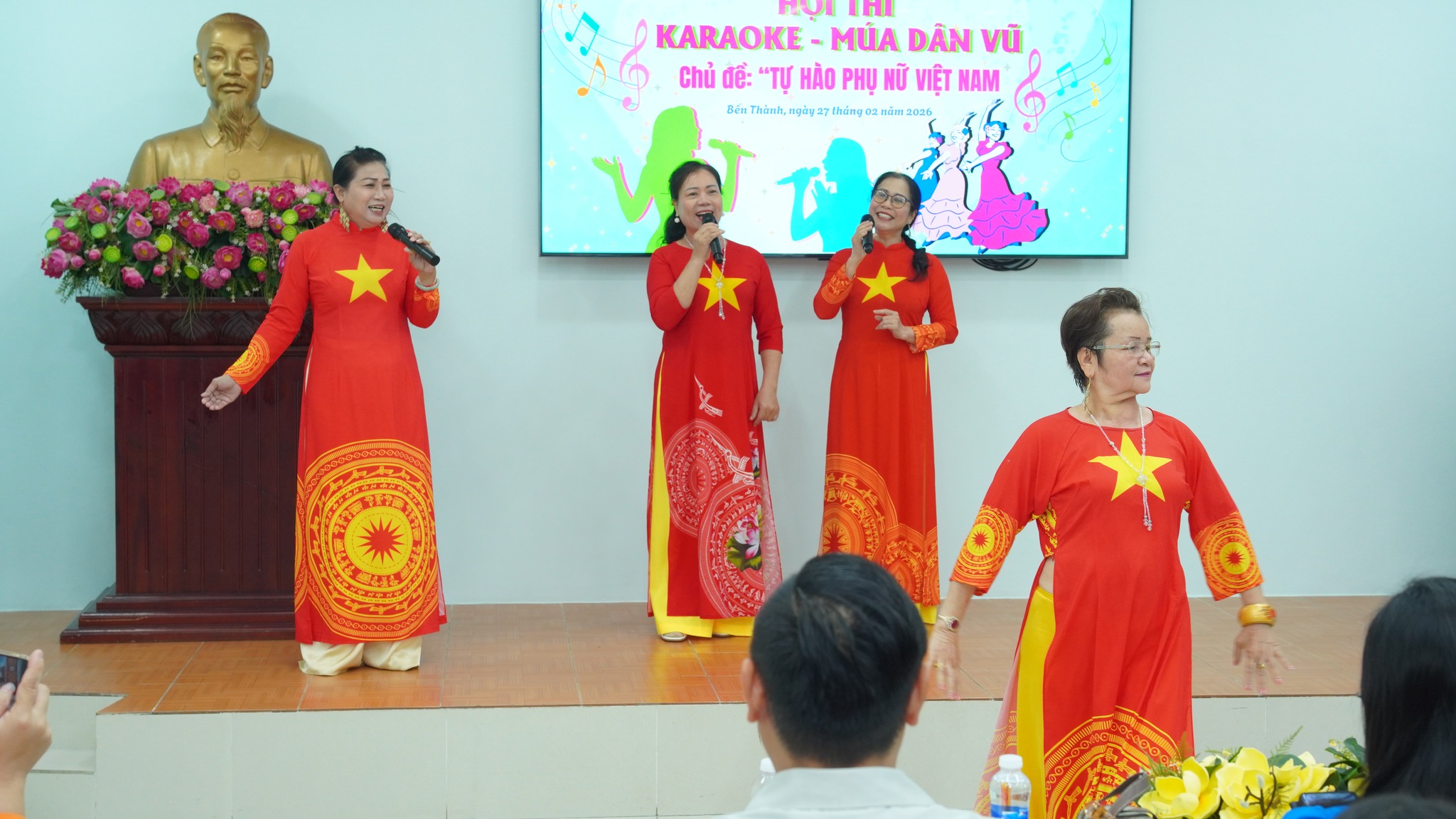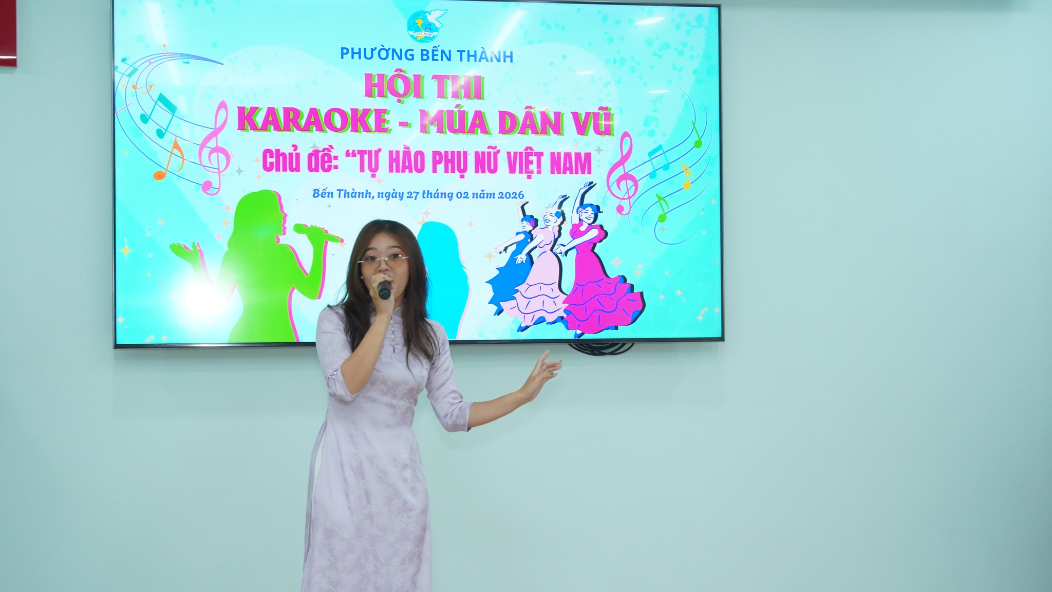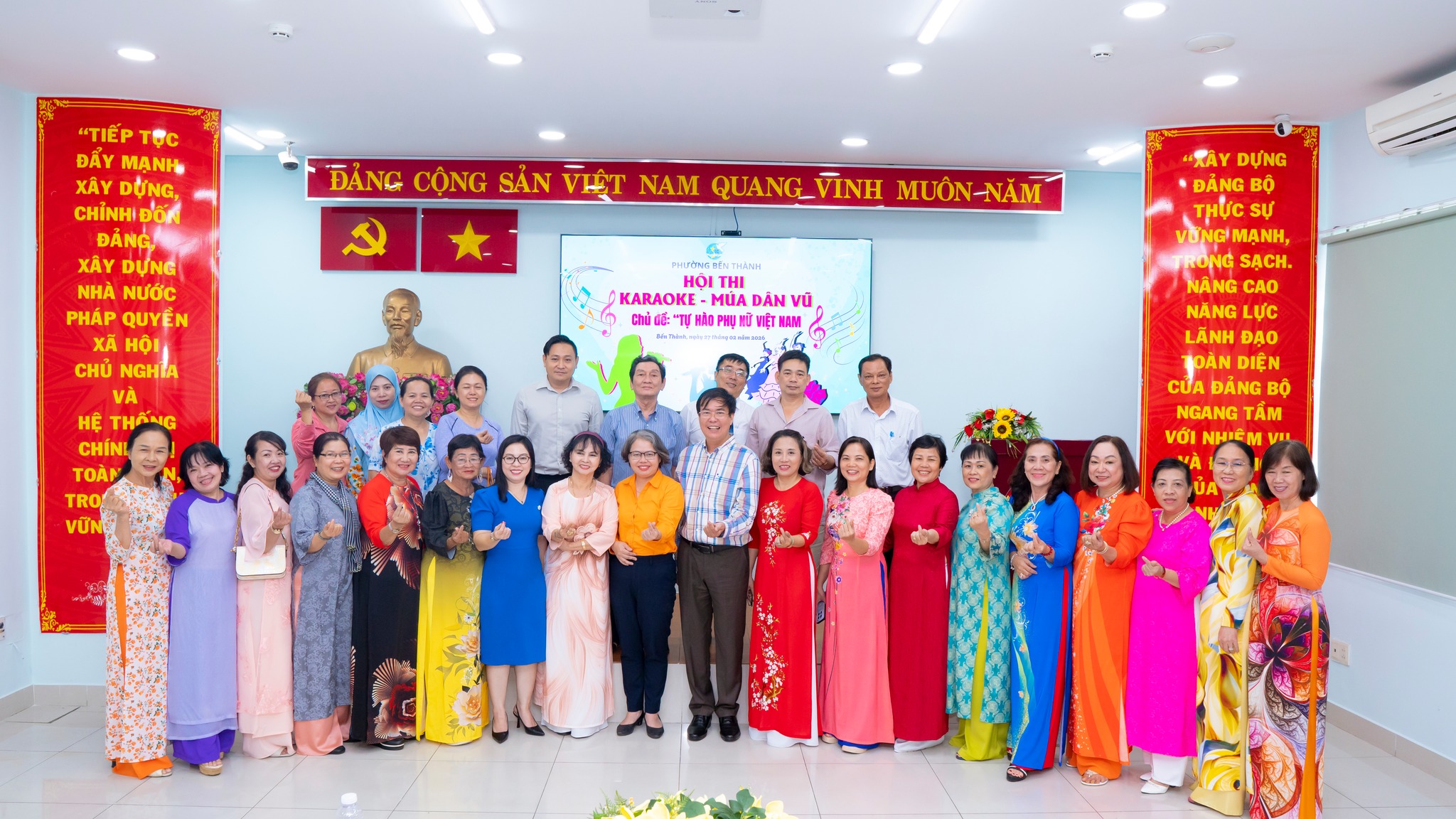 Ngày 27/2, Hội Liên hiệp Phụ nữ phường Bến Thành tổ chức Hội thi Karaoke – Múa dân vũ với chủ đề “Tự hào phụ nữ Việt Nam”. Tham dự có các đồng chí: Phạm Thị Ngọc Minh, Ủy viên Ban Thường vụ Đảng ủy, Chủ tịch Ủy ban MTTQ Việt Nam phường; Bùi Thị Thúy Hiền, Đảng ủy viên, Phó Trưởng Ban Xây dựng Đảng phường; Trần Huy Diễn, Phụ trách phòng Văn hóa – Du lịch Trung tâm Cung ứng dịch vụ công phường Bến Thành; Trương Văn Trí, đạo diễn trường Đại học Sân khấu Điện ảnh TPHCM.
