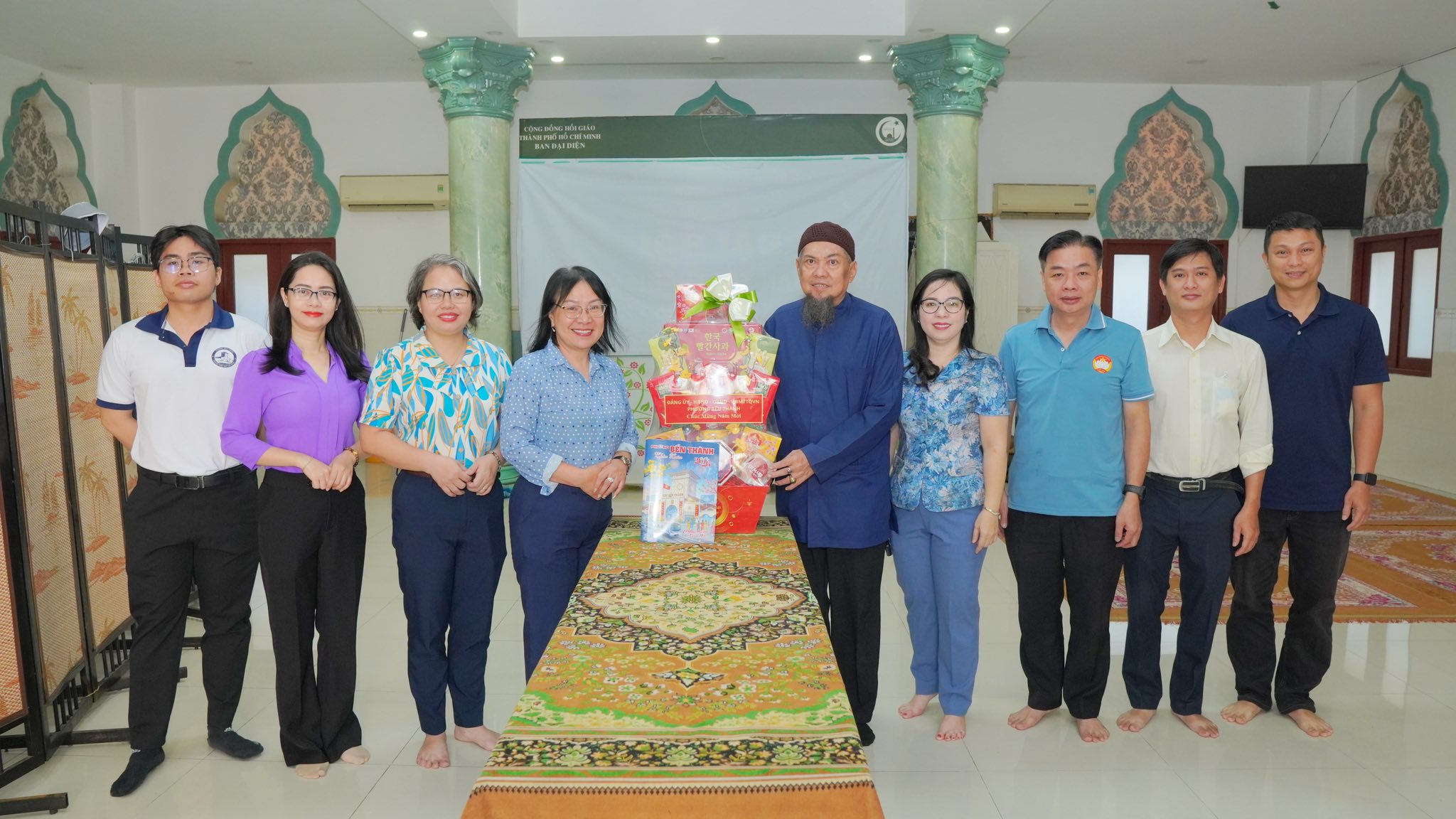 Đoàn đến thăm và tặng quà các cơ sở tôn giáo, tín ngưỡng gồm: Đình Thái Hưng; Chùa Trường Thạnh; Phụng Sơn Tự; Miếu bà Thiên Hậu; Thánh đường Hồi giáo Ai Ra him.
