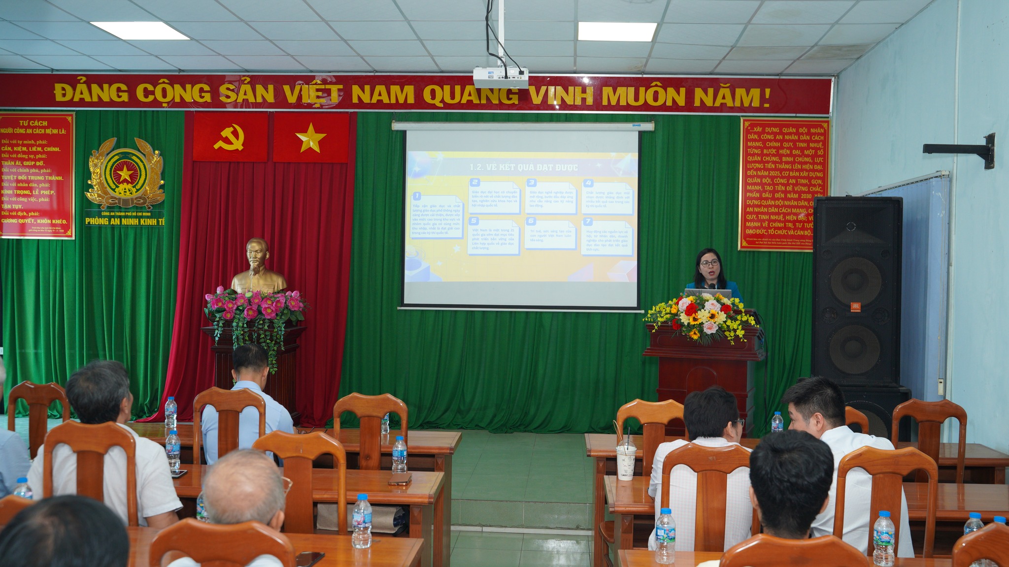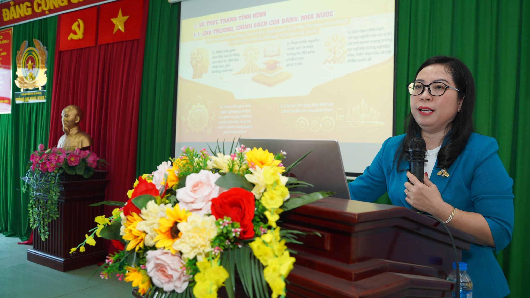 Đồng chí Bùi Thị Thúy Hiền, Phó Trưởng Ban Xây dựng Đảng phường Bến Thành triển khai Nghị quyết số 71-NQ/TW, ngày 22/8/2025 của Bộ Chính trị về đột phá phát triển giáo dục và đào tạo và Nghị quyết số 72-NQ/TW ngày 9/9/2025 của Bộ Chính trị về một số giải pháp đột phá, tăng cường bảo vệ, chăm sóc và nâng cao sức khỏe Nhân dân.