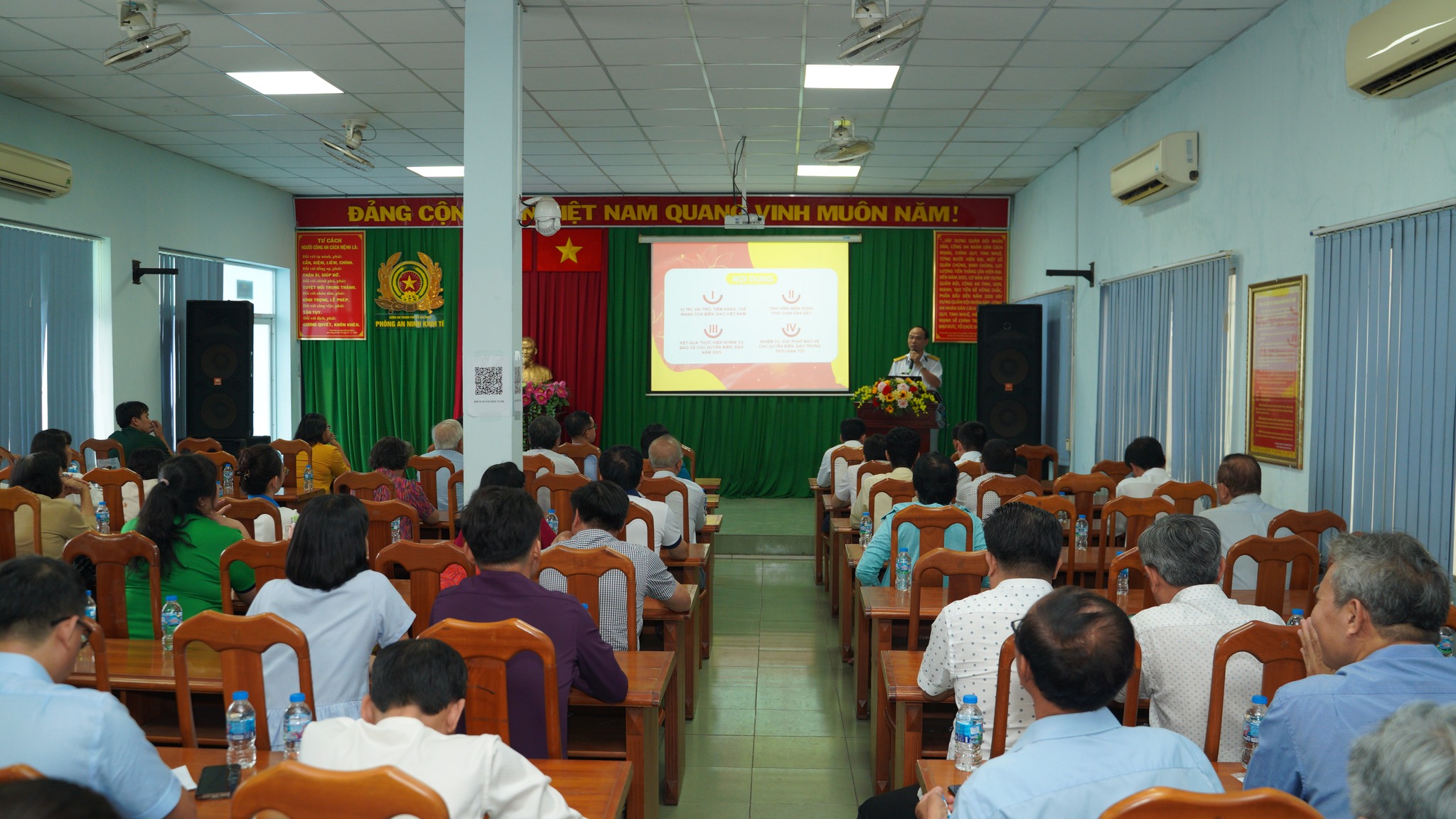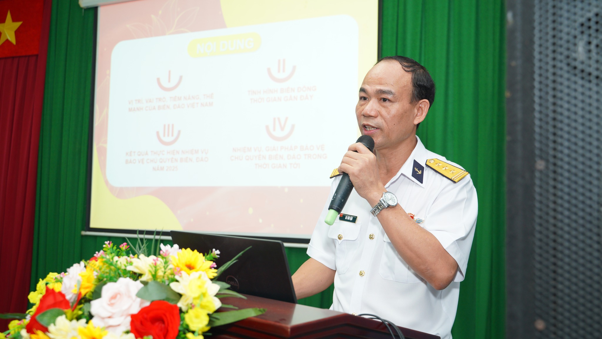 Các đại biểu đã được nghe báo cáo viên Thượng tá Hà Văn Hậu, Phó Chính ủy Lữ đoàn 125, Vùng 2 Hải quân trình bày sơ lược về lịch sử hình thành và phát triển của Lữ đoàn 125, vị trí, vai trò của Biển Đông và biển đảo Việt Nam, tình hình Biển Đông thời gian gần đây và chính sách của Việt Nam về Biển Đông.