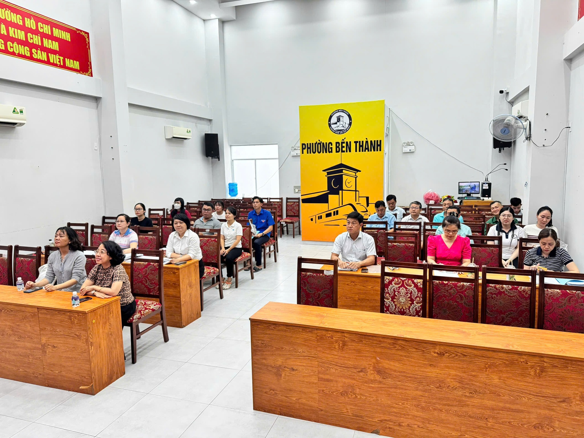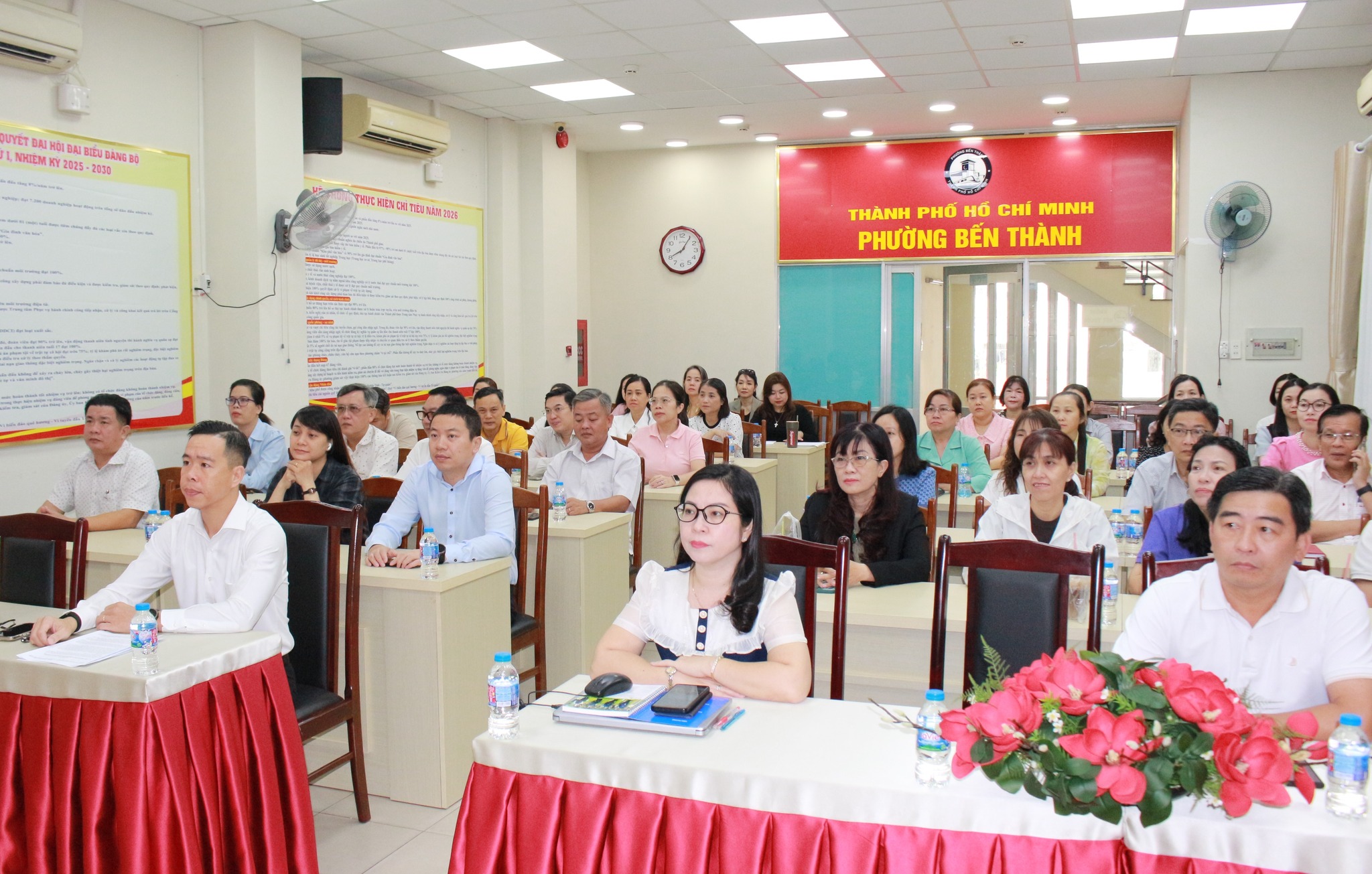 Tham dự hội nghị phường Bến Thành tổ chức 3 điểm cầu. Trong đó, tại điểm cầu Hội trường trụ sở Đảng ủy phường Bến Thành có các đồng chí: Hoàng Thị Tố Nga, Bí thư Đảng ủy, Chủ tịch HĐND phường; Nguyễn Kim Đức, Phó Bí thư Thường trực Đảng ủy phường; các đồng chí là Ủy viên Ban Thường vụ Đảng ủy phường (khối Đảng); bí thư các tổ chức đảng trực thuộc; các đồng chí báo cáo viên, lực lượng công tác viên dư luận xã hội phường.