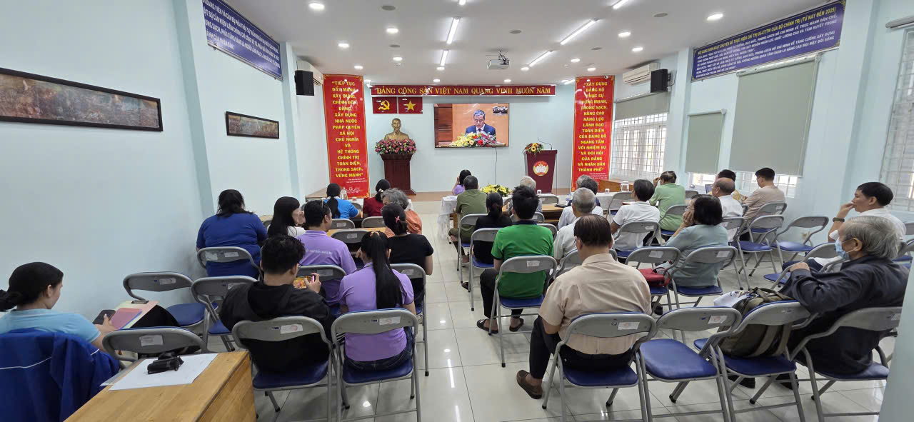 Điểm cầu tại hội trường Ủy ban MTTQ Việt Nam phường có sự tham dự các đồng chí Ủy viên Ban Chấp hành Đảng bộ phường (Khối Mặt trận Tổ quốc và các tổ chức chính trị – xã hội); Phó các tổ chức chính trị – xã hội phường; cùng Bí thư 27 Chi bộ khu phố.
