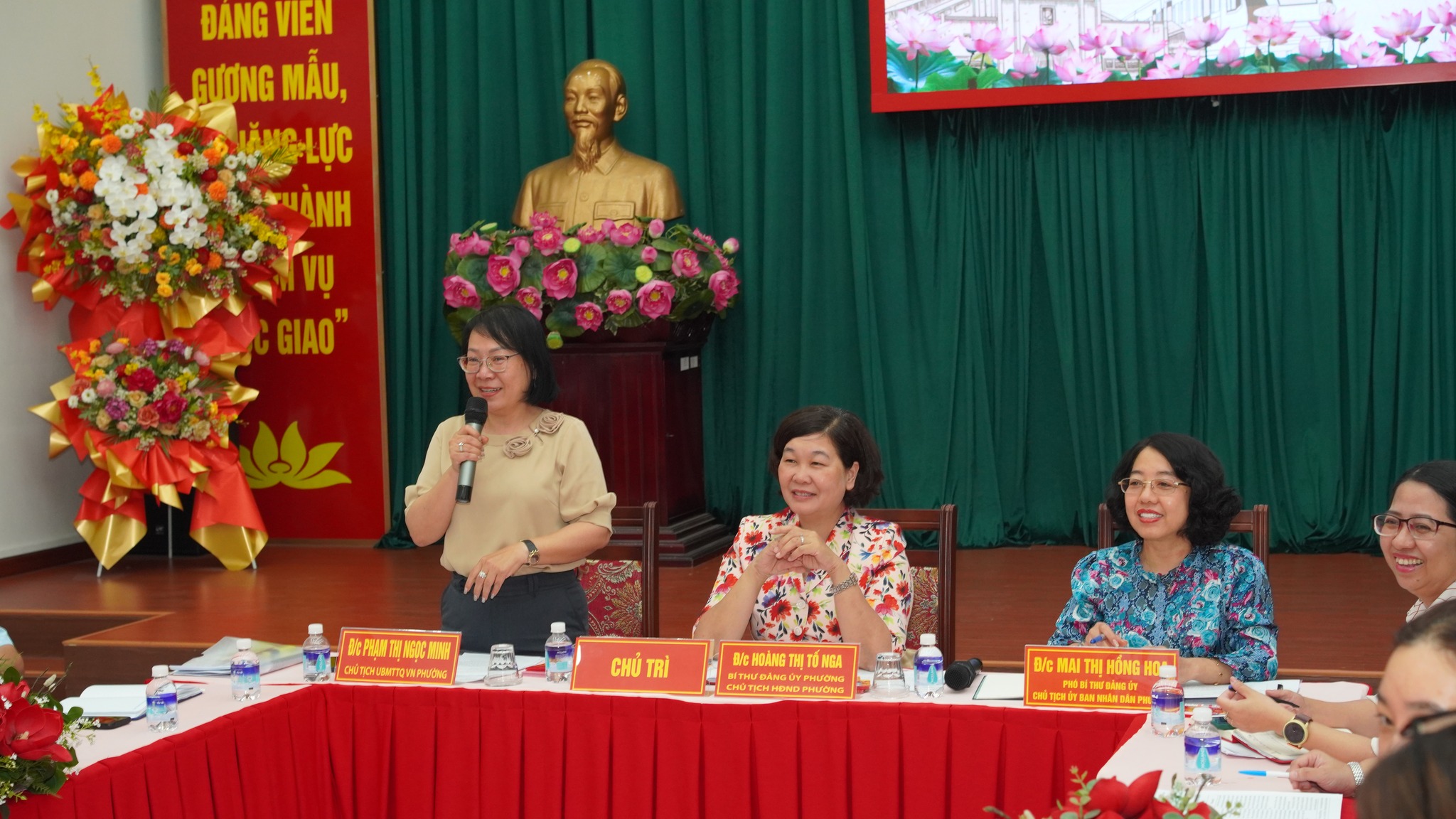 Tham dự có các đồng chí: Hoàng Thị Tố Nga, Bí thư Đảng ủy, Chủ tịch HĐND phường; Mai Thị Hồng Hoa, Phó Bí thư Đảng ủy, Chủ tịch UBND phường; Phạm Thị Ngọc Minh, Ủy viên Ban Thường vụ Đảng ủy, Chủ tịch Ủy ban MTTQ Việt Nam phường cùng Thường trực các tổ chức chính trị – xã hội phường, bí thư chi bộ; trưởng 27 khu phố; trưởng ban công tác mặt trận 27 khu phố.
