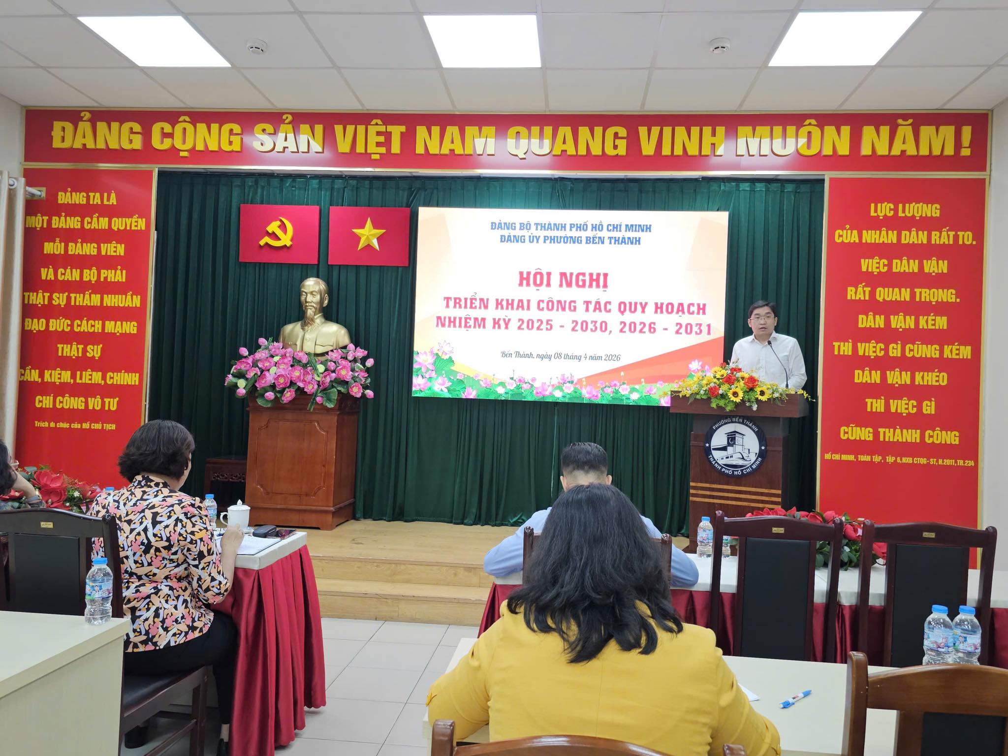 Sáng 08/4/2026, Đảng ủy phường Bến Thành tổ chức Hội nghị triển khai quy hoạch cấp ủy các cấp và cán bộ lãnh đạo, quản lý trong hệ thống chính trị phường Bến Thành nhiệm kỳ 2025 – 2030, 2026 – 2031.