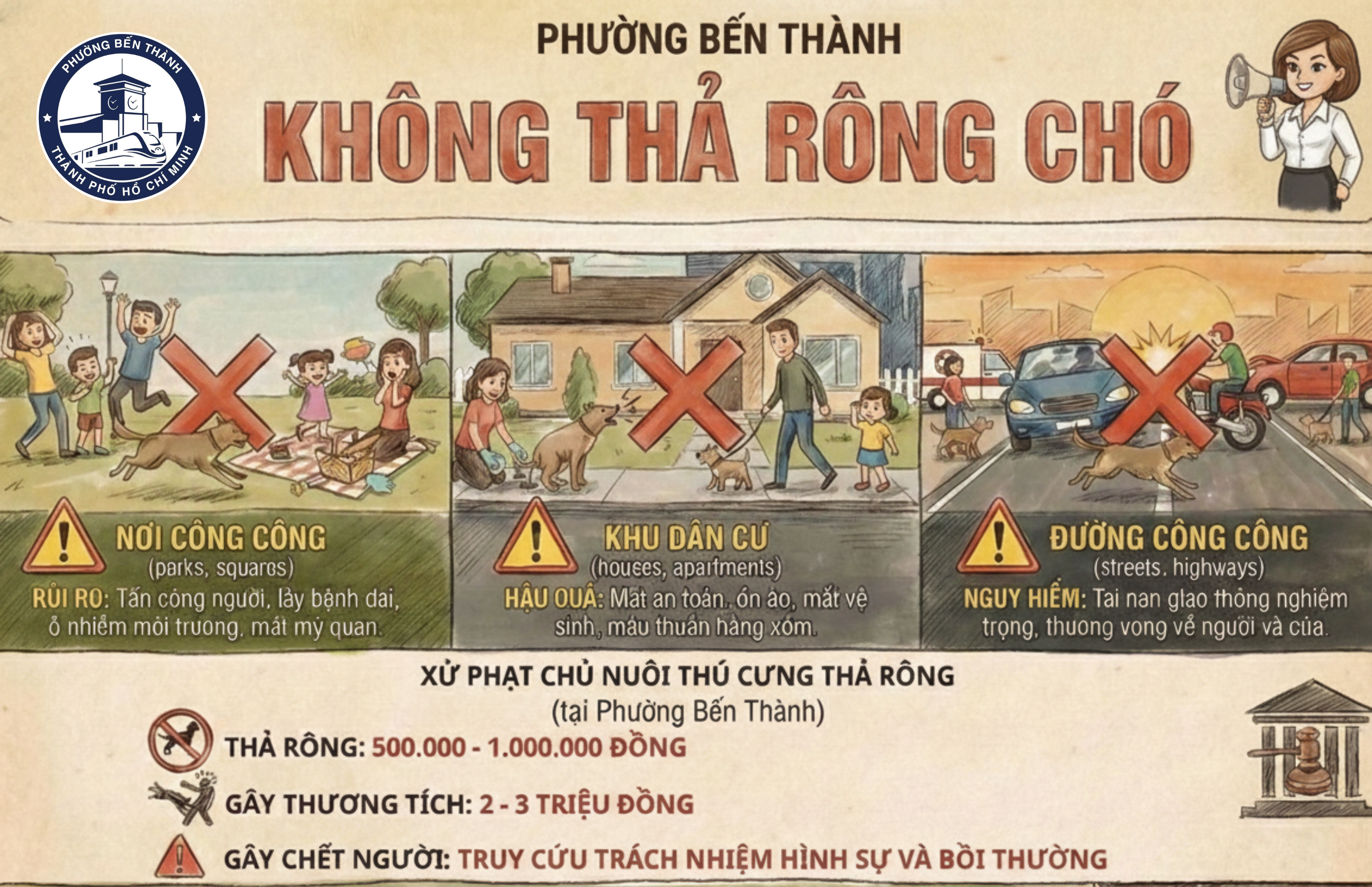 Việc thả rông thú cưng không chỉ gây mất mỹ quan, phóng uế bừa bãi mà còn tiềm ẩn nhiều rủi ro: