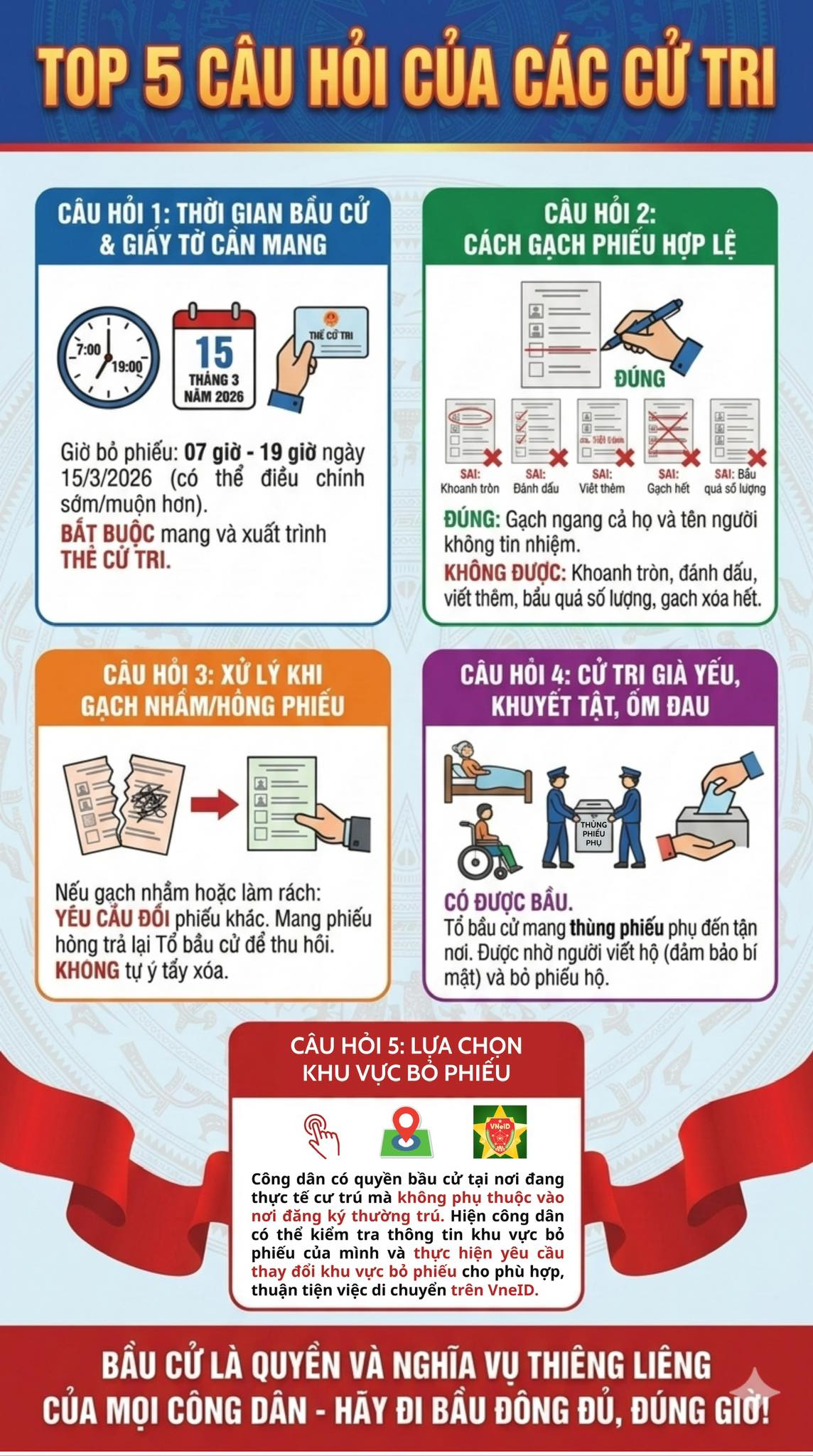 Câu hỏi 1: Thời gian bầu cử diễn ra khi nào và tôi cần mang theo giấy tờ gì?