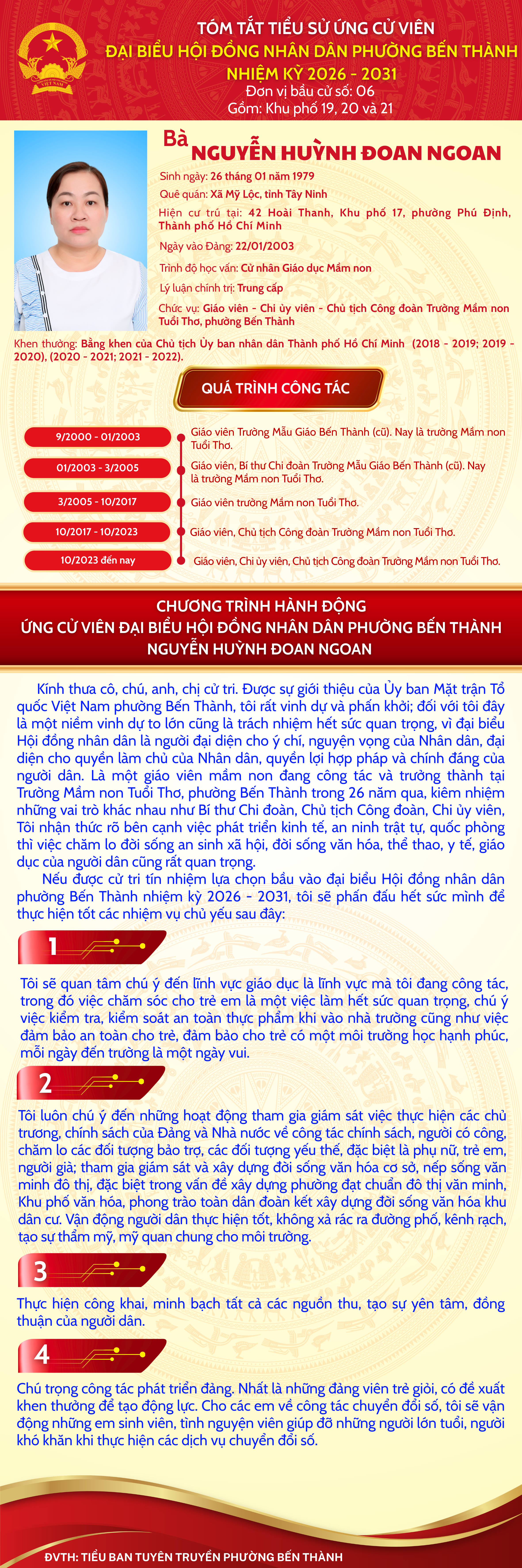 Trân trọng kính mời quý cử tri theo dõi nội dung chi tiết và các cam kết hành động được thể hiện trong từng hình ảnh bên dưới và chia sẻ rộng rãi để thông tin được lan tỏa đến toàn thể cử tri trên địa bàn.