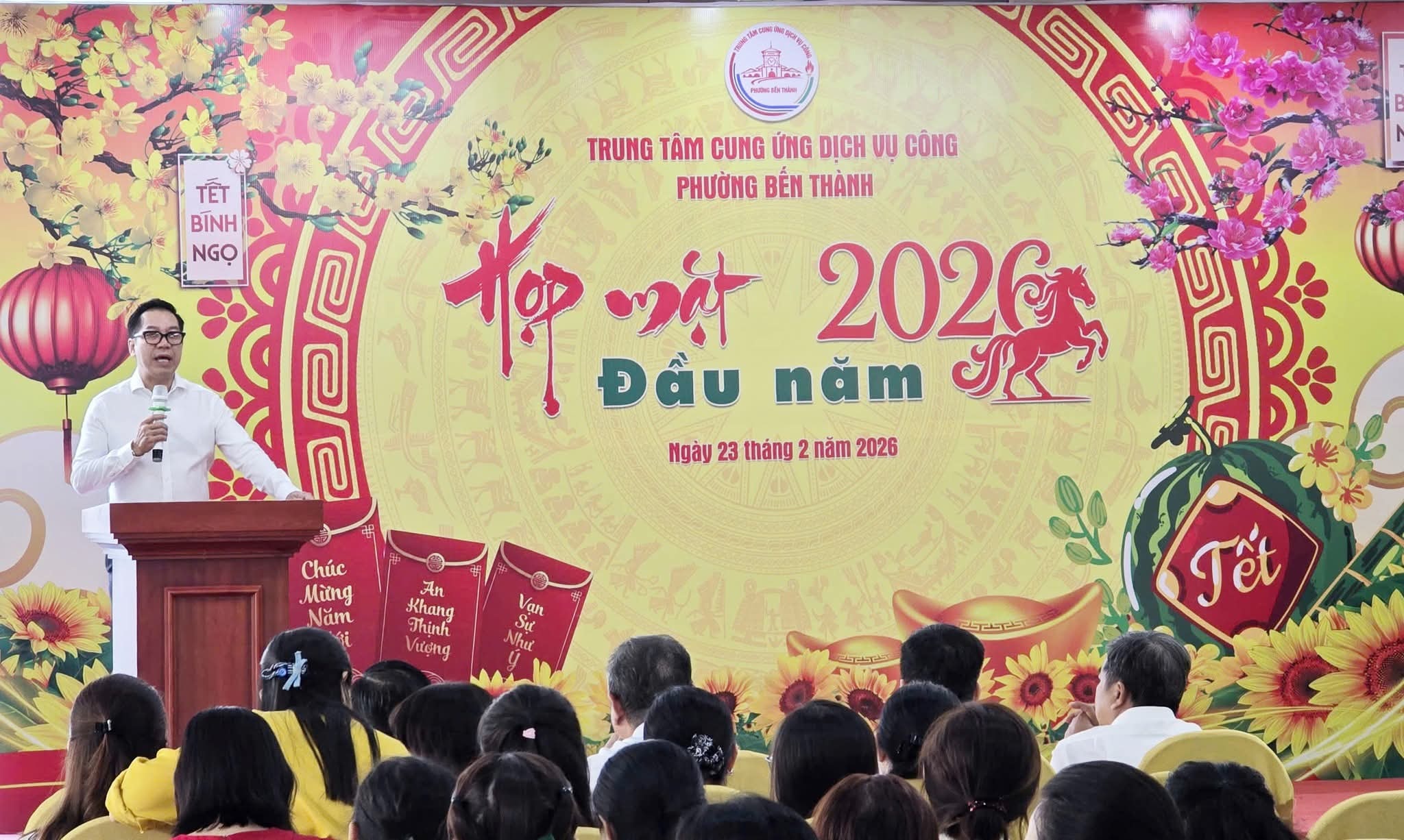 Chương trình họp mặt diễn ra trong không khí thân tình, gắn kết, thể hiện quyết tâm của tập thể Trung tâm Cung ứng dịch vụ công phường Bến Thành trong việc hoàn thành xuất sắc nhiệm vụ năm 2026.