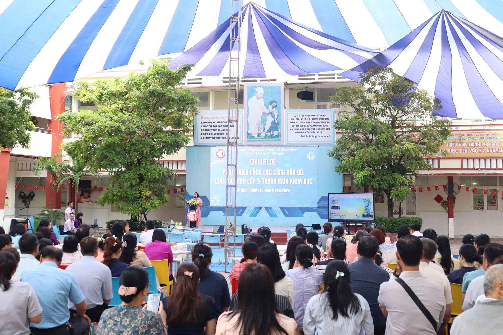 Sáng ngày 21/4/2026, tại Trường Tiểu học Nguyễn Thái Học, Cụm chuyên môn 5 – TP. Hồ Chí Minh đã tổ chức thành công chuyên đề “Phát triển năng lực công dân số cho học sinh lớp 5 trong môn Khoa học”.