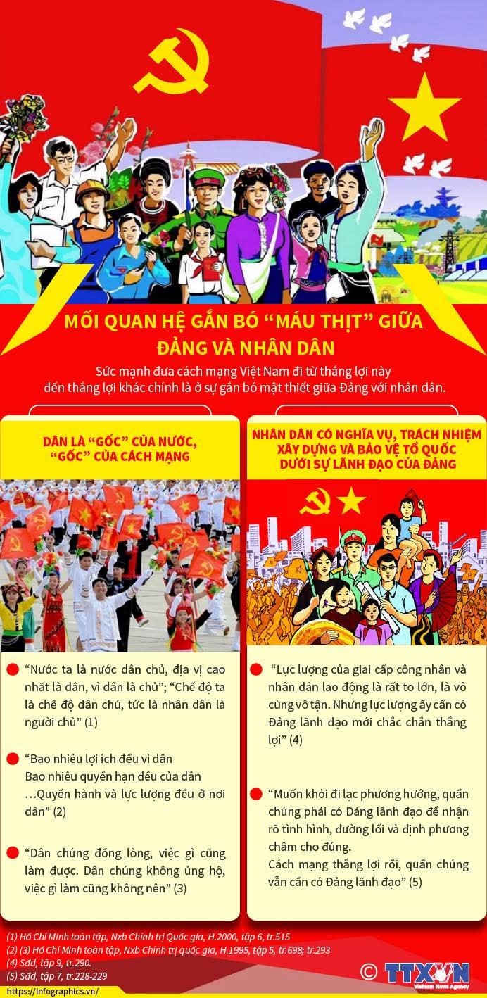 Trong suốt tiến trình cách mạng Việt Nam, từ khi Đảng Cộng sản Việt Nam ra đời đến nay, lịch sử khẳng định một chân lý bền vững: Đảng luôn gắn bó mật thiết với nhân dân, từ nhân dân mà ra, vì nhân dân mà chiến đấu và không có lợi ích nào khác ngoài lợi ích của nhân dân. Đó không chỉ là bản chất cách mạng, khoa học của Đảng ta, mà còn là quy luật tồn tại, phát triển và là nguồn cội sức mạnh uy tín và vai trò lãnh đạo của Đảng. Chính mối quan hệ gắn bó bền chặt ấy đã tạo nên nền tảng chính trị – xã hội vững chắc để Đảng lãnh đạo dân tộc vượt qua mọi thử thách, đi từ thắng lợi này đến thắng lợi khác.