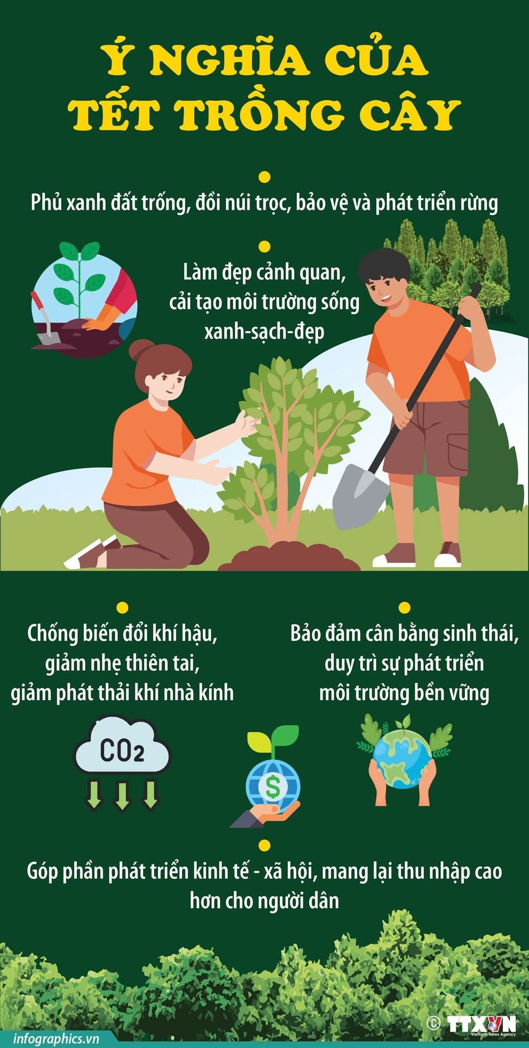 Hưởng ứng lời kêu gọi của Bác Hồ “Mùa xuân là Tết trồng cây, làm cho đất nước càng ngày càng xuân”, hàng năm, cứ mỗi độ Tết đến, Xuân về, nhân dân cả nước lại nô nức tham gia Tết trồng cây. Trong bối cảnh tình trạng ô nhiễm môi trường, biến đổi khí hậu toàn cầu đang có những ảnh hưởng nghiêm trọng đến cuộc sống của con người, đất nước đang đẩy mạnh công nghiệp hóa, hiện đại hóa, phong trào Tết trồng cây càng trở nên ý nghĩa và cần thiết.
